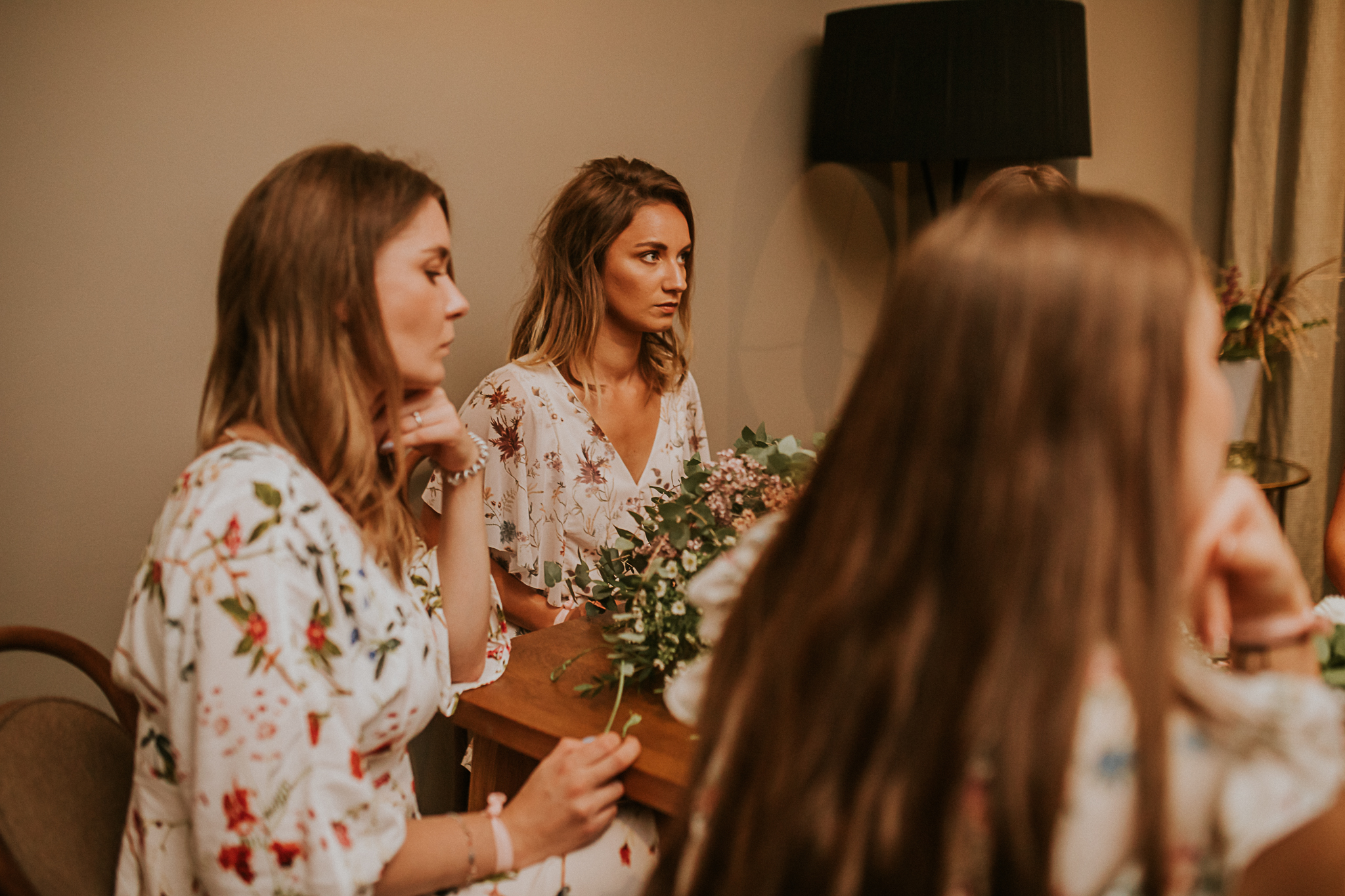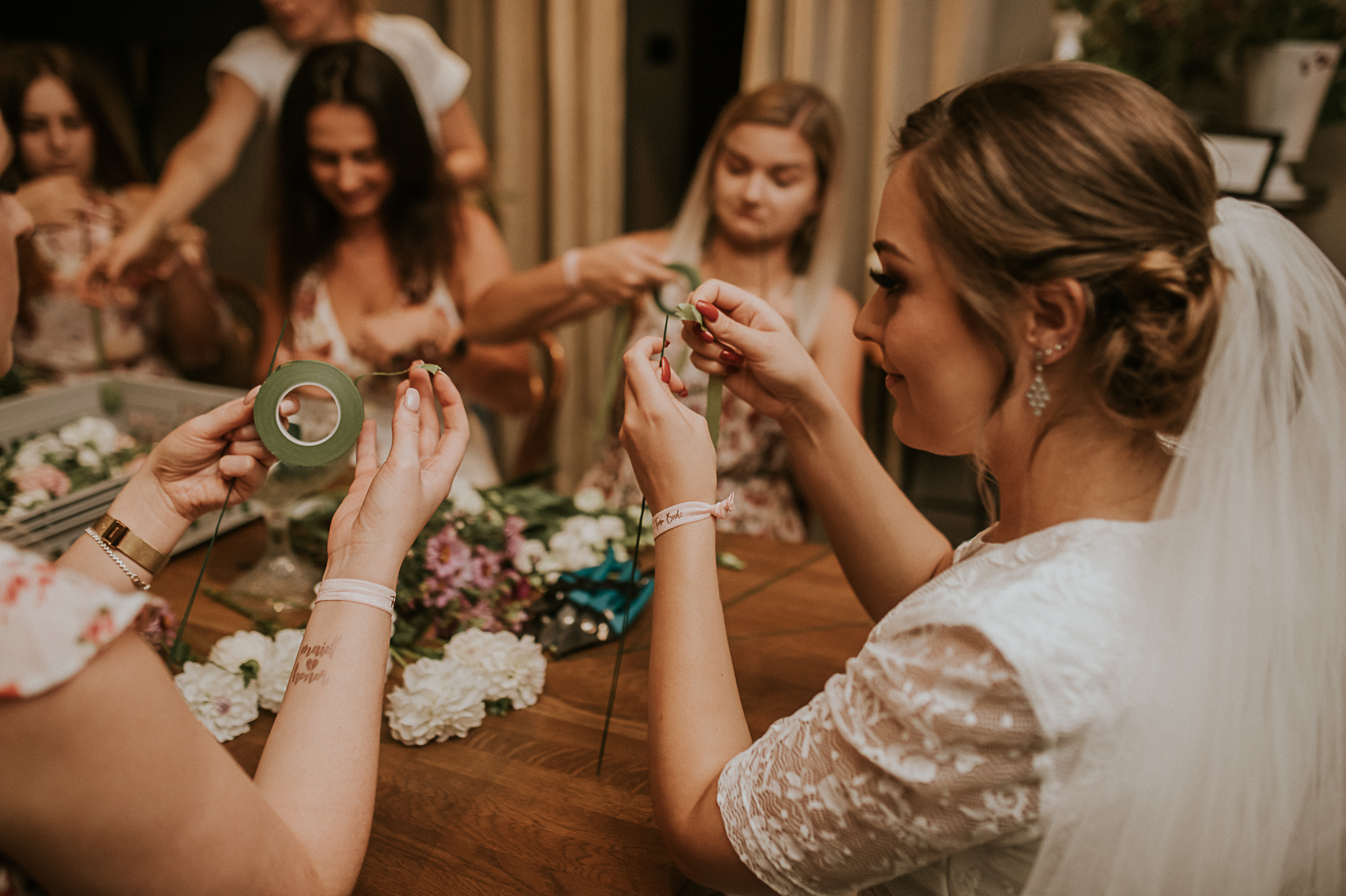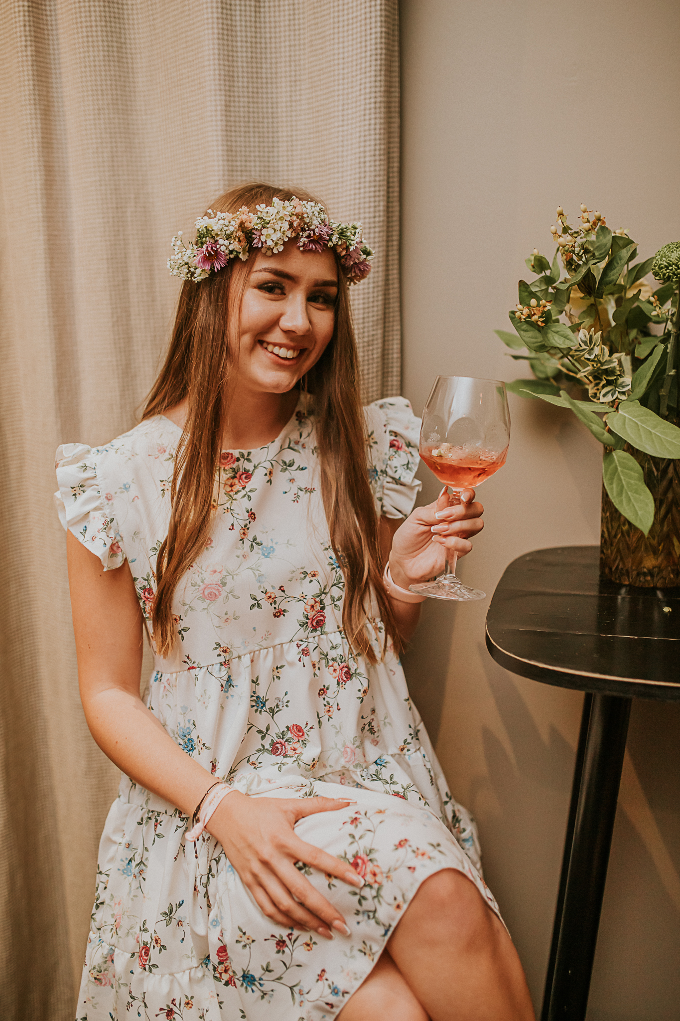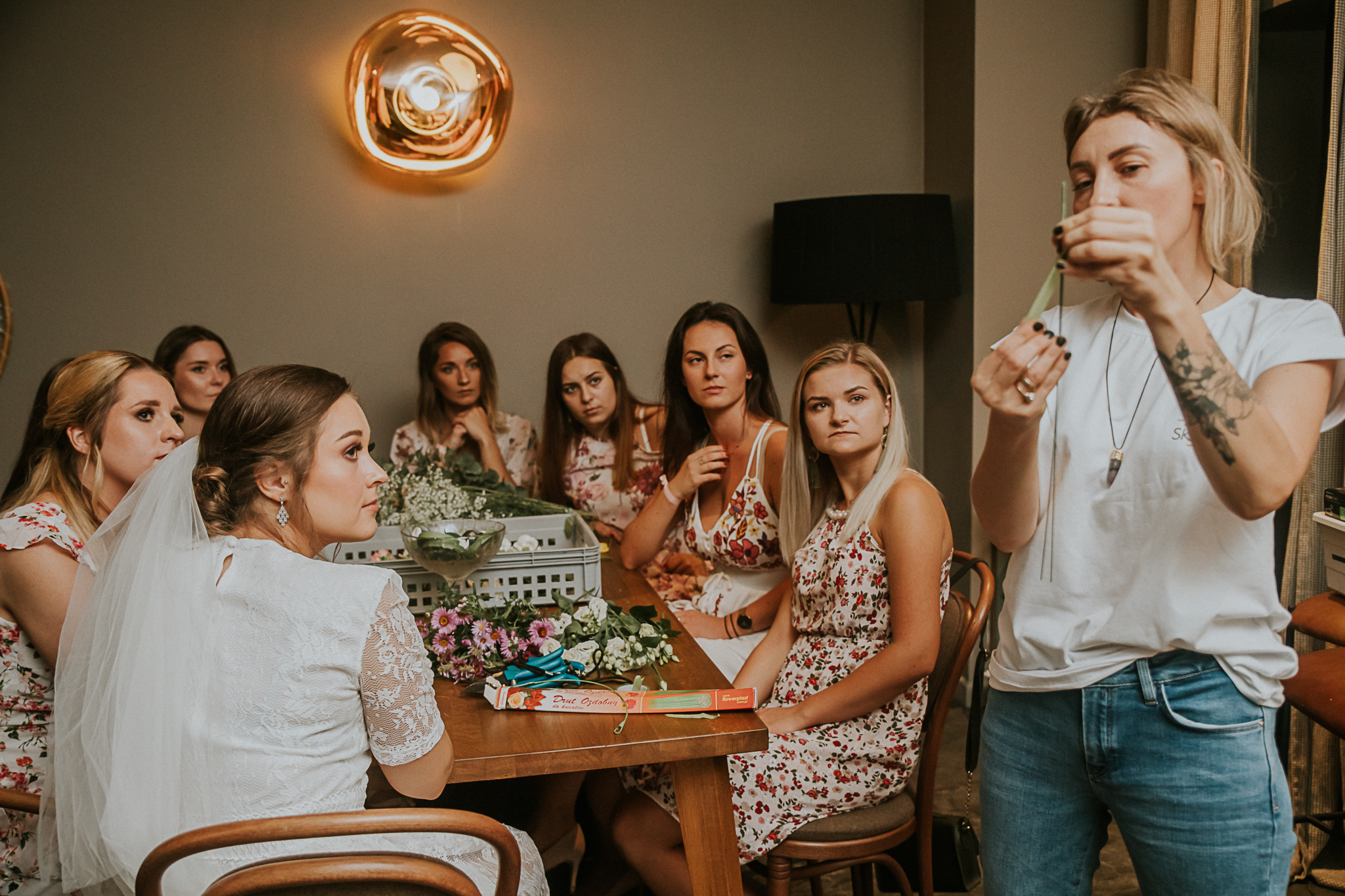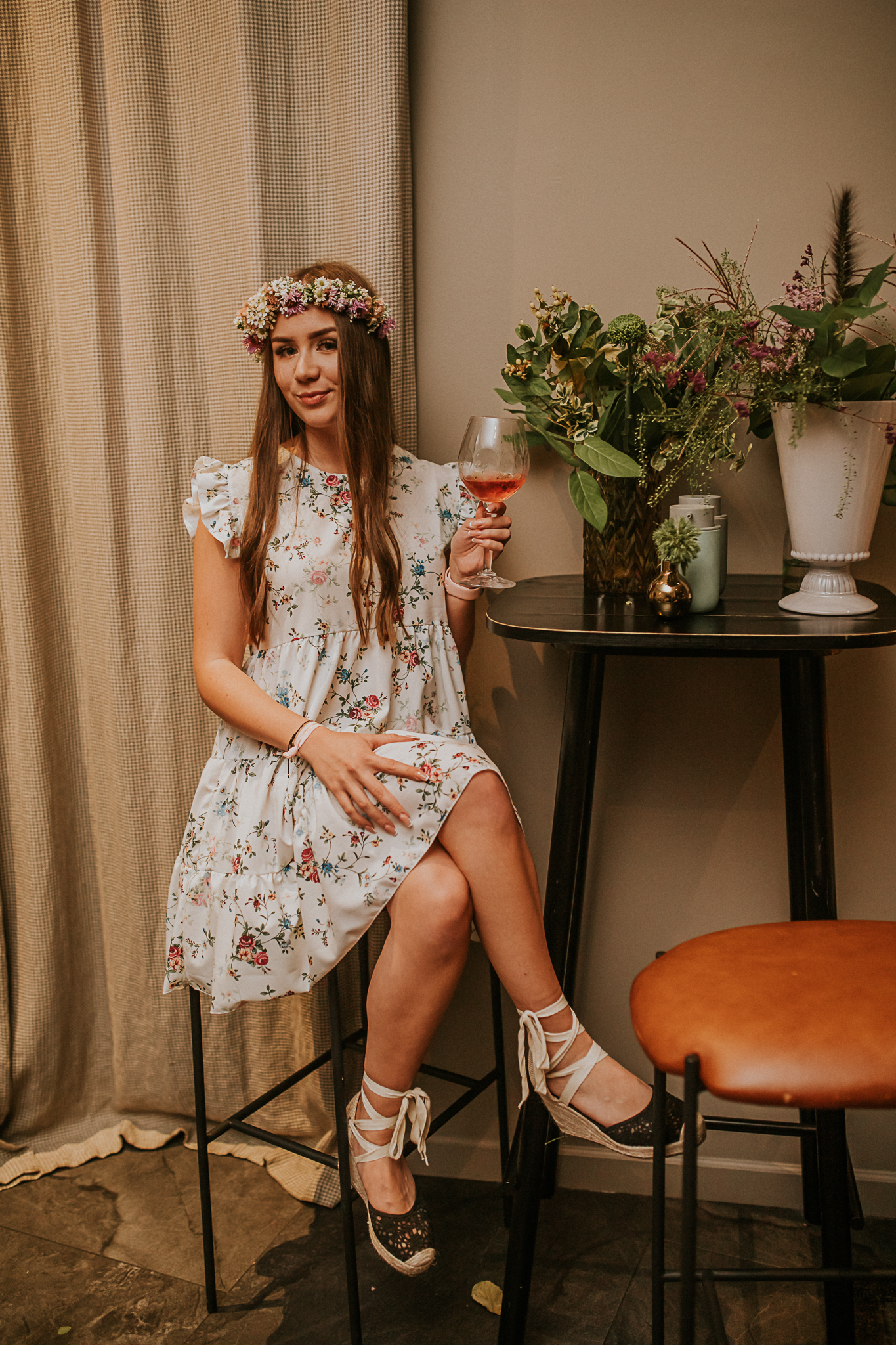 Trendem podczas wieczorów panieńskich czy urodzin stają się teraz kreatywne spotkania ze znajomymi. Podczas takich spotkań nie tylko pije się kawę i zajada się ciastem. Na takie spotkania zaprasza się osobę, która robi ciekawe rzeczy. Dlatego, podczas wieczoru panieńskiego Ani, na który zabiorę Was pod postem, dziewczyny uczyły się jak pleść wianki. Na pozór spotkanie nie różniło się od tych zwyczajnych, przy stole. Wieczór odbył się w restauracji, były drinki, ciasto i dobre jedzenie. Pani Kwiat-kowska uczyła dziewczyny jak zrobić przepiękny boho wianek na głowę. Ja w tym czasie fotografowałam dziewczyny. Fotografowanie grupy osób, to nie lada wyzwanie. Zawsze znajdzie się ktoś, kto właśnie zamknie oczy. Pewien naukowiec podaje, że człowiek mruga średnio 10 razy na minutę. W rezultacie zamknięcie oczu trwa około 250 milisekund. Prędkość migawki to 8 milisekund. Dlatego sprzedam Wam rozwiązanie, zanim zrobisz zdjęcie, każ wszystkim zamknąć oczy. Dobre rezultaty, są niemal pewne.