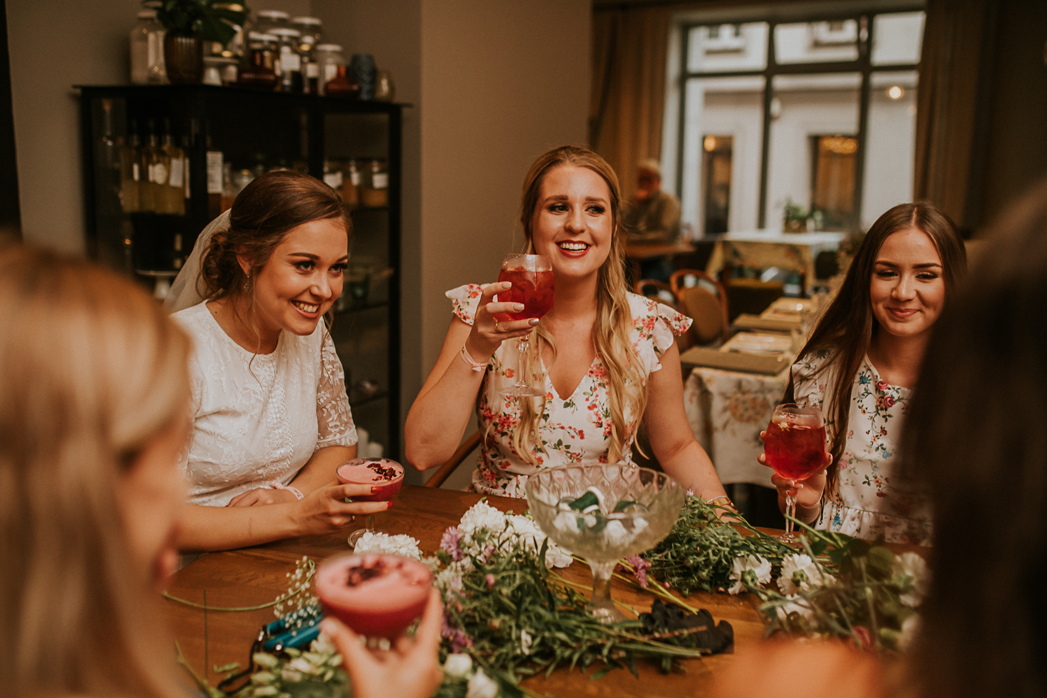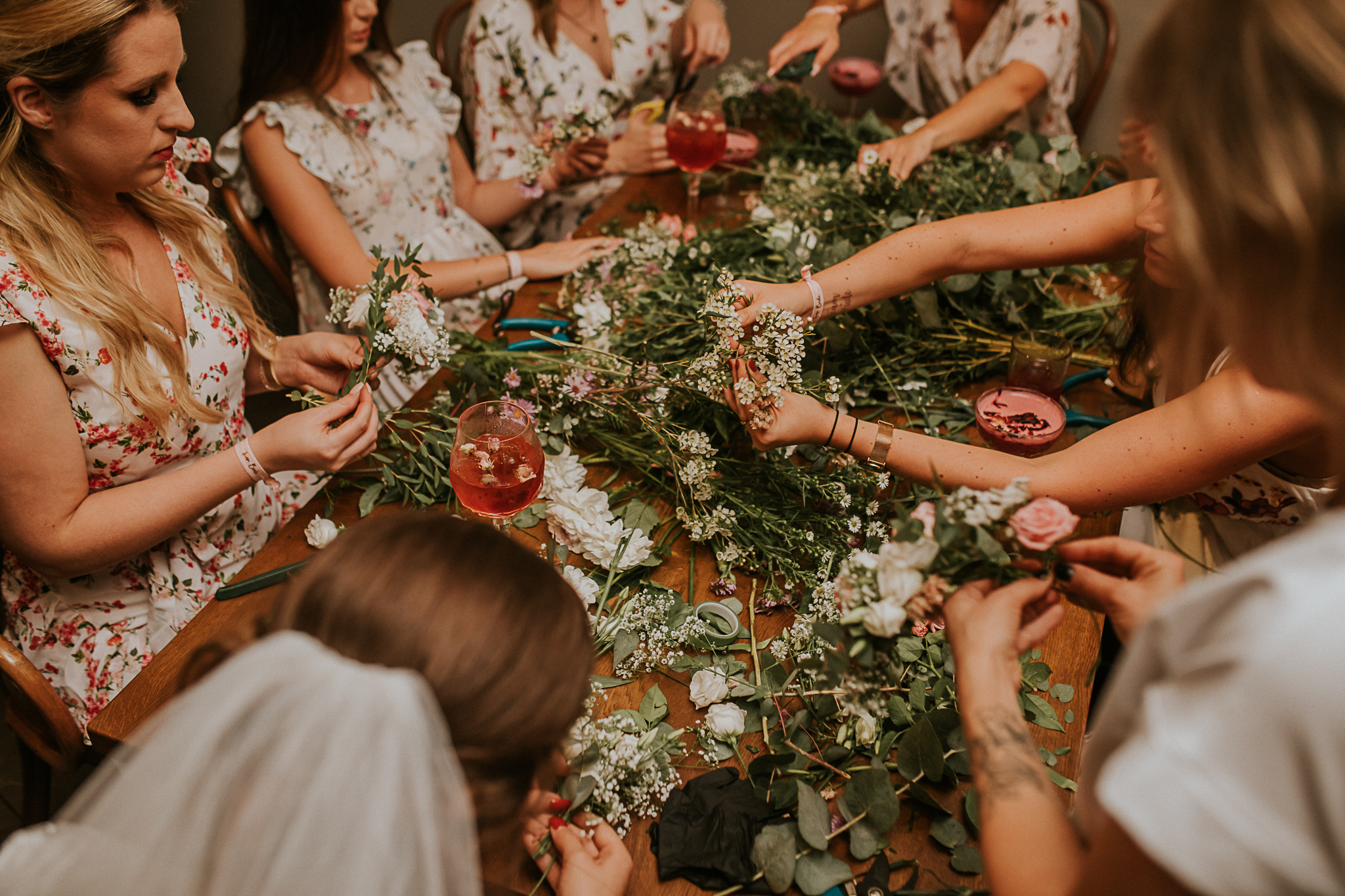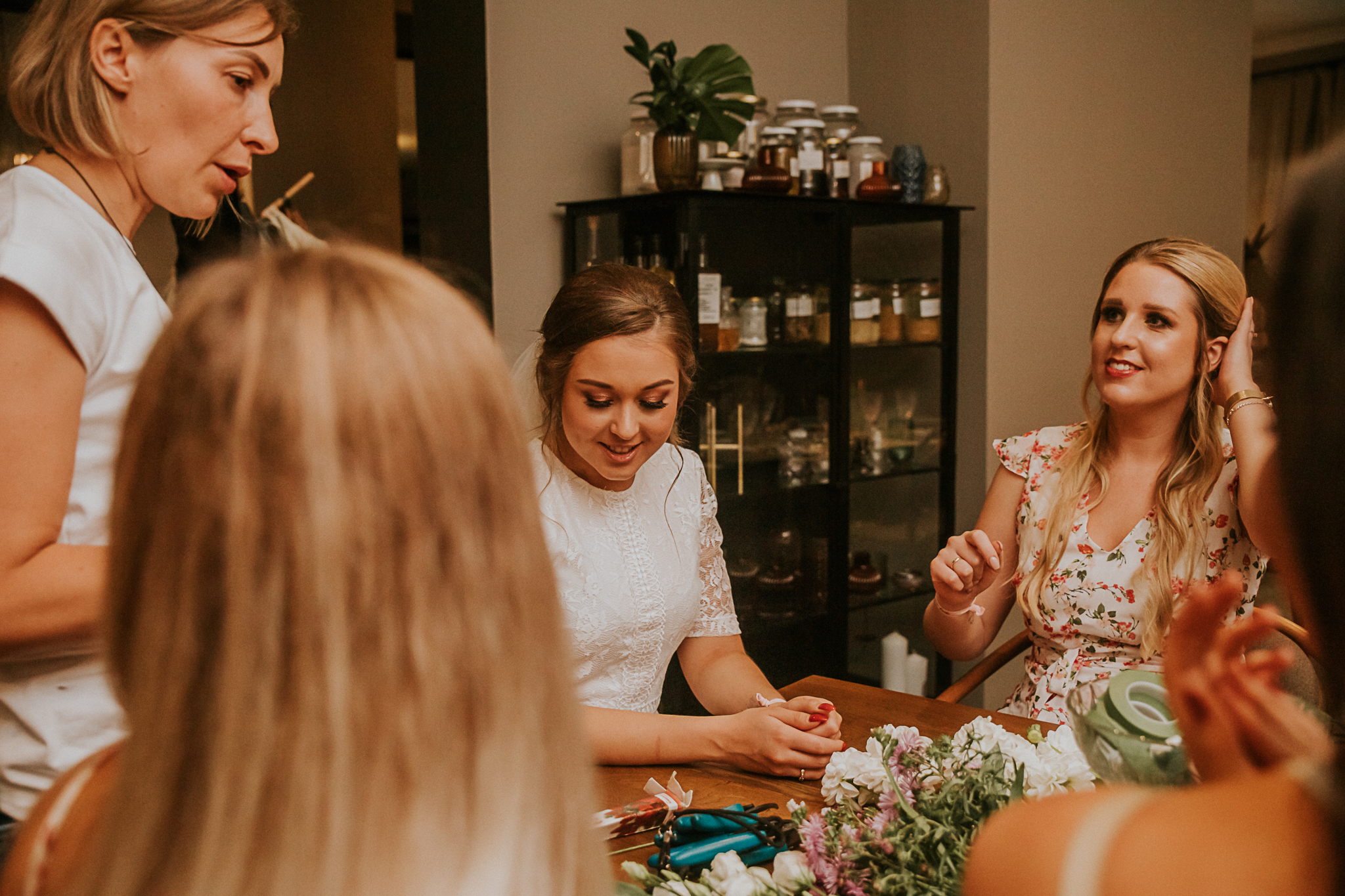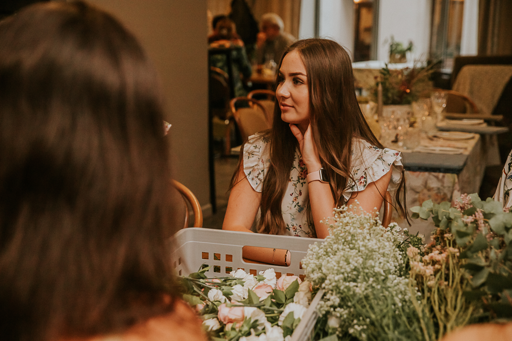 Trendem podczas wieczorów panieńskich czy urodzin stają się teraz kreatywne spotkania ze znajomymi. Podczas takich spotkań nie tylko pije się kawę i zajada się ciastem. Na takie spotkania zaprasza się osobę, która robi ciekawe rzeczy. Dlatego, podczas wieczoru panieńskiego Ani, na który zabiorę Was pod postem, dziewczyny uczyły się jak pleść wianki. Na pozór spotkanie nie różniło się od tych zwyczajnych, przy stole. Wieczór odbył się w restauracji, były drinki, ciasto i dobre jedzenie. Pani Kwiat-kowska uczyła dziewczyny jak zrobić przepiękny boho wianek na głowę. Ja w tym czasie fotografowałam dziewczyny. Fotografowanie grupy osób, to nie lada wyzwanie. Zawsze znajdzie się ktoś, kto właśnie zamknie oczy. Pewien naukowiec podaje, że człowiek mruga średnio 10 razy na minutę. W rezultacie zamknięcie oczu trwa około 250 milisekund. Prędkość migawki to 8 milisekund. Dlatego sprzedam Wam rozwiązanie, zanim zrobisz zdjęcie, każ wszystkim zamknąć oczy. Dobre rezultaty, są niemal pewne.