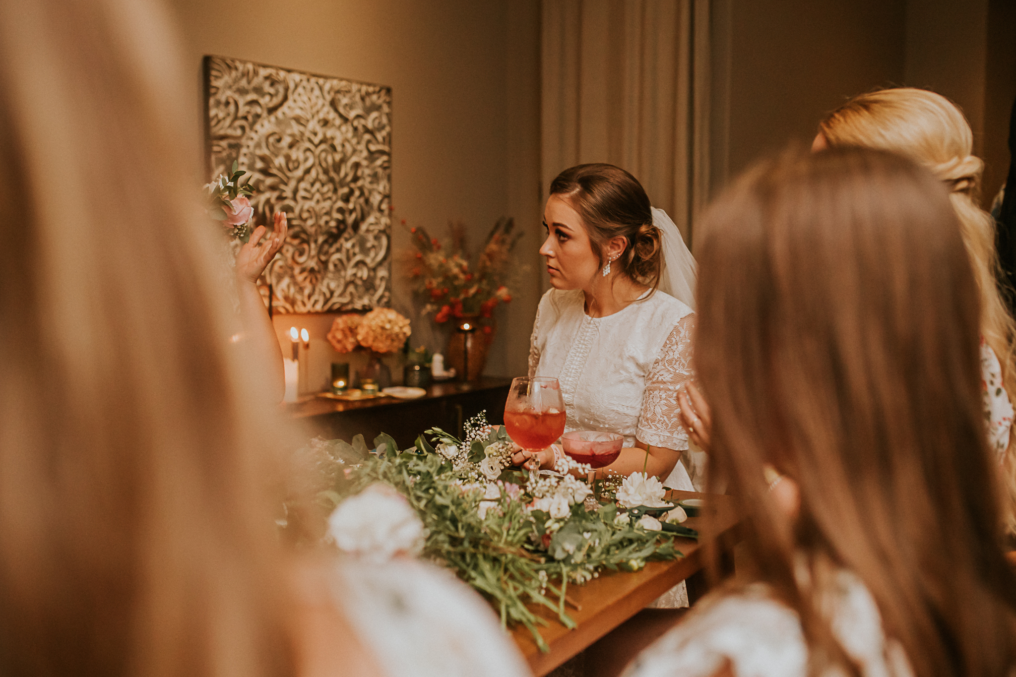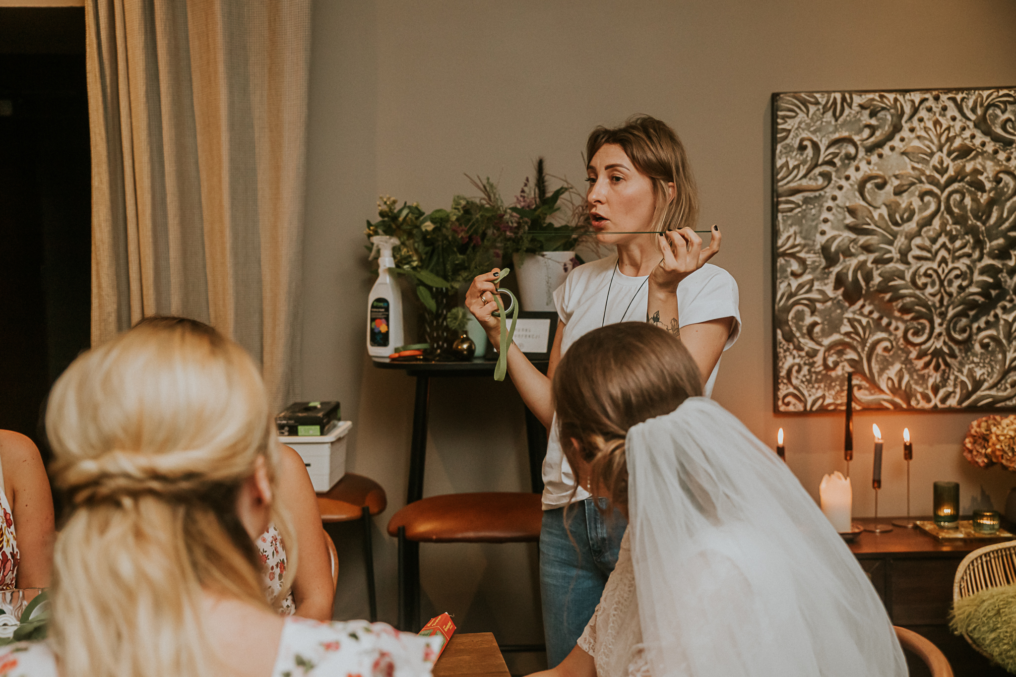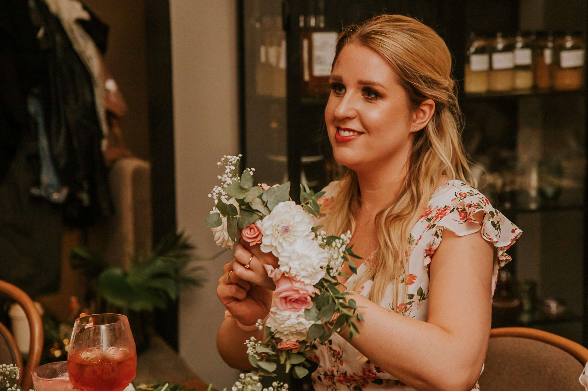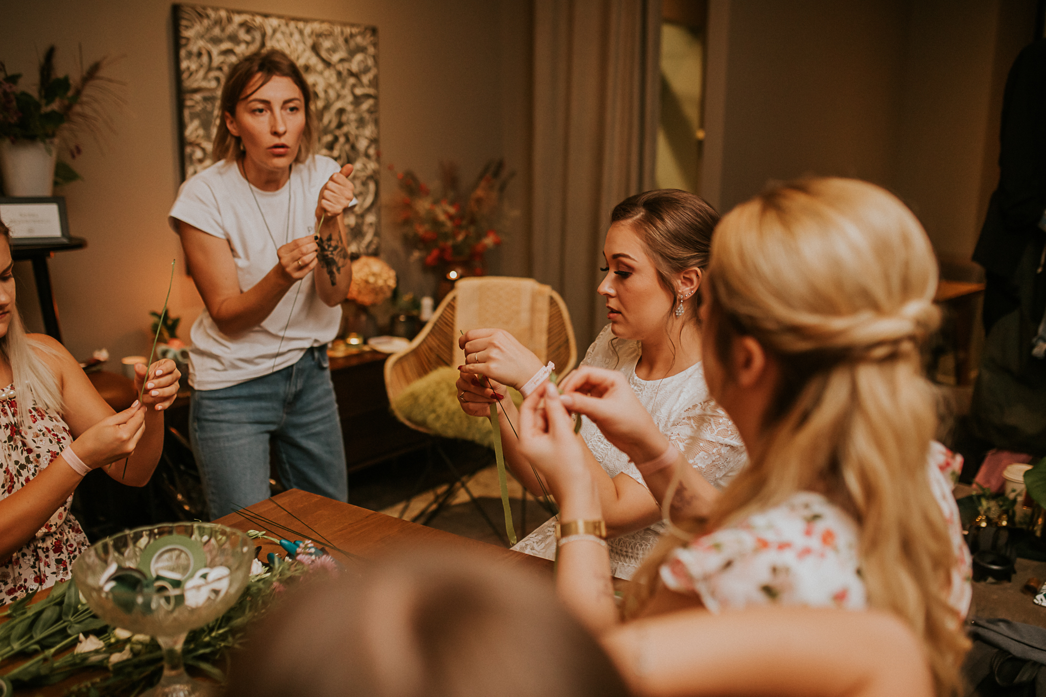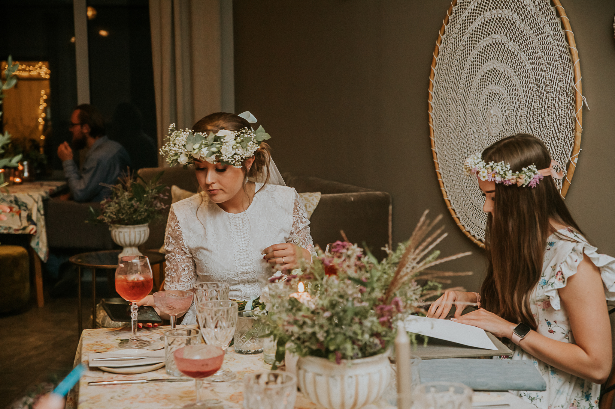 Trendem podczas wieczorów panieńskich czy urodzin stają się teraz kreatywne spotkania ze znajomymi. Podczas takich spotkań nie tylko pije się kawę i zajada się ciastem. Na takie spotkania zaprasza się osobę, która robi ciekawe rzeczy. Dlatego, podczas wieczoru panieńskiego Ani, na który zabiorę Was pod postem, dziewczyny uczyły się jak pleść wianki. Na pozór spotkanie nie różniło się od tych zwyczajnych, przy stole. Wieczór odbył się w restauracji, były drinki, ciasto i dobre jedzenie. Pani Kwiat-kowska uczyła dziewczyny jak zrobić przepiękny boho wianek na głowę. Ja w tym czasie fotografowałam dziewczyny. Fotografowanie grupy osób, to nie lada wyzwanie. Zawsze znajdzie się ktoś, kto właśnie zamknie oczy. Pewien naukowiec podaje, że człowiek mruga średnio 10 razy na minutę. W rezultacie zamknięcie oczu trwa około 250 milisekund. Prędkość migawki to 8 milisekund. Dlatego sprzedam Wam rozwiązanie, zanim zrobisz zdjęcie, każ wszystkim zamknąć oczy. Dobre rezultaty, są niemal pewne.