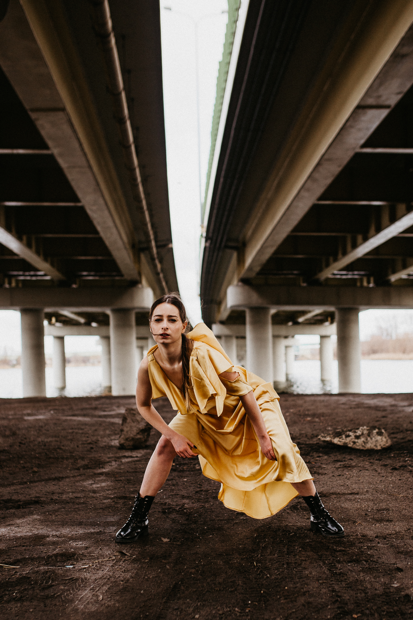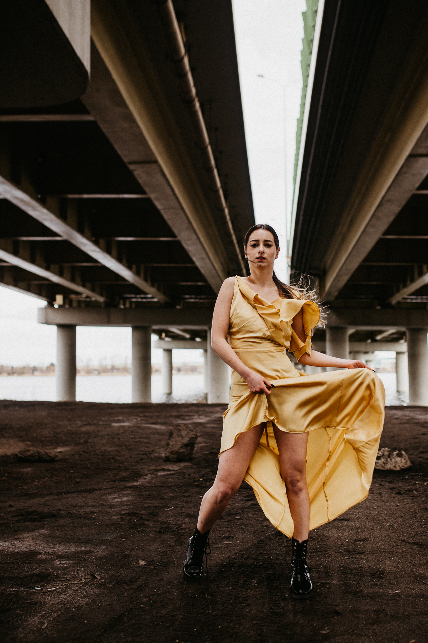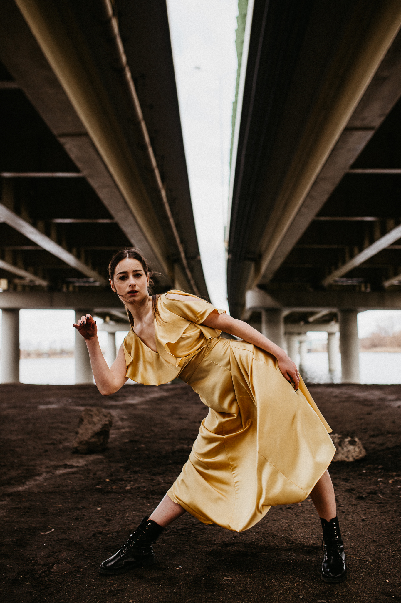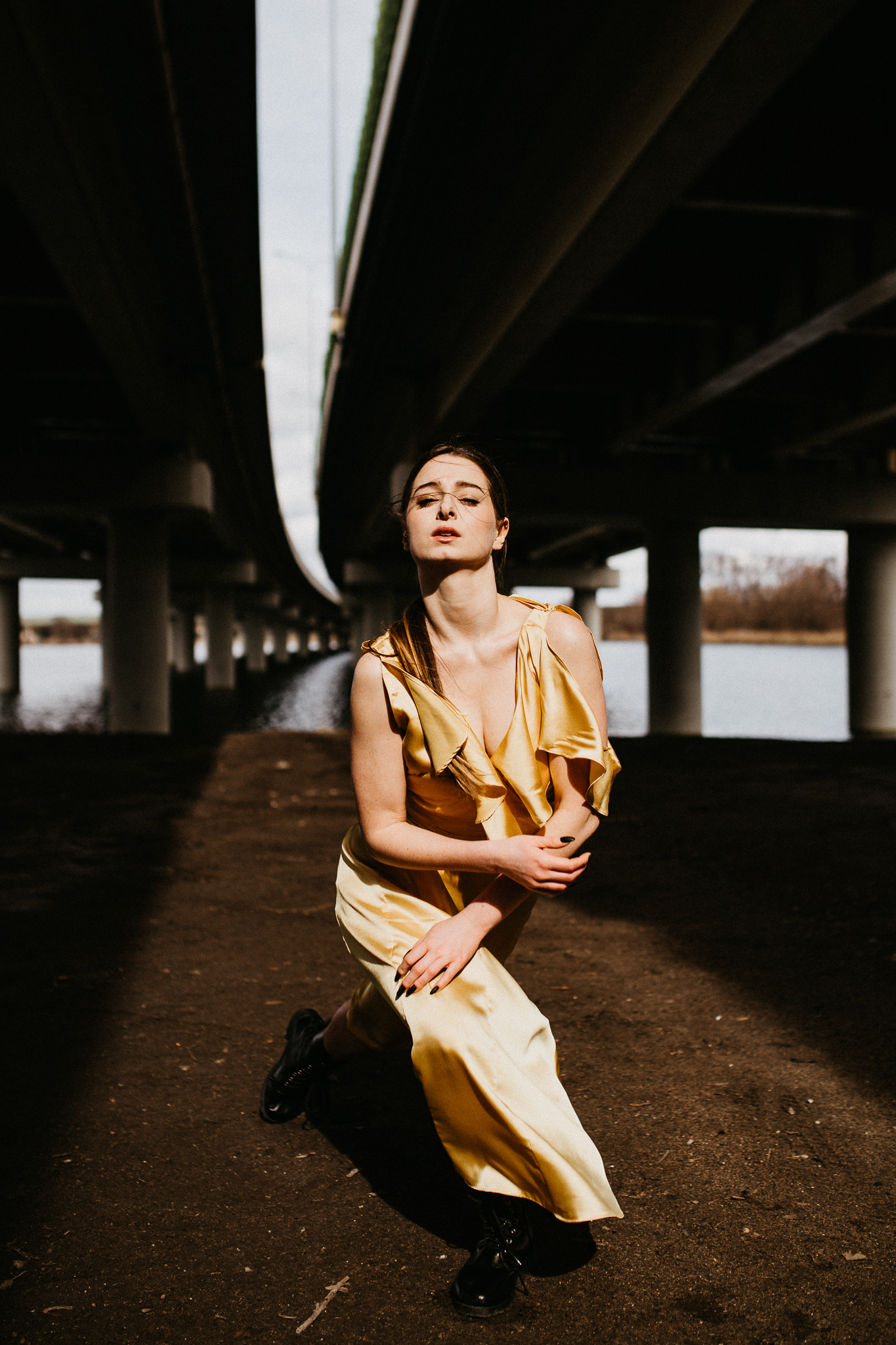 Najdrożej sprzedaje się sztuka, a sztukę tworzą profesjonaliści! Piękna modelka w złotej aksamitnej sukni na tle betonowego, ogromnego mostu. Wnioskując, chciałaby pokazywać