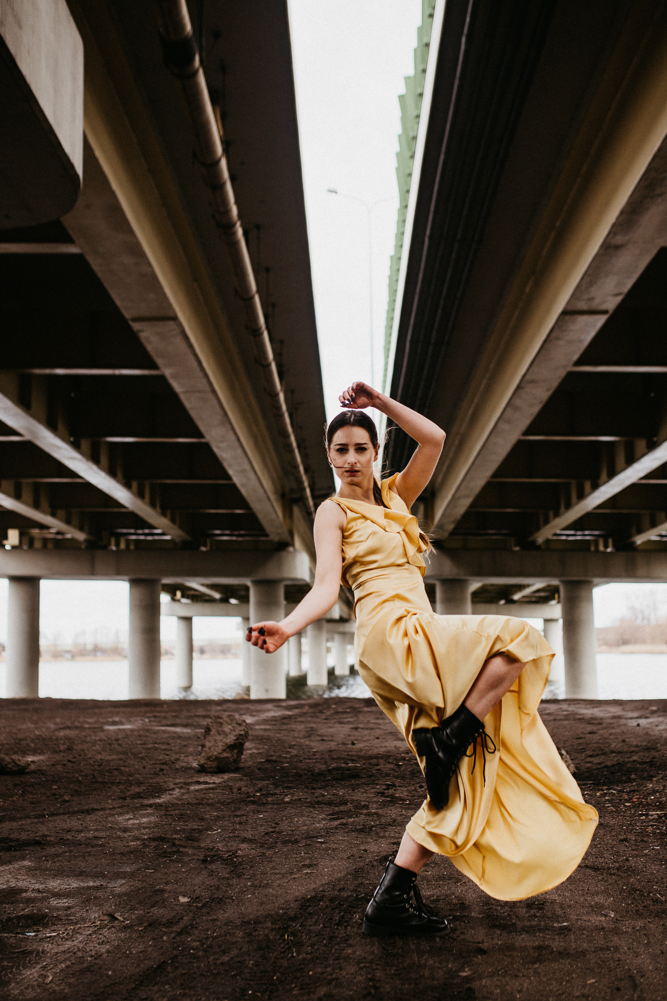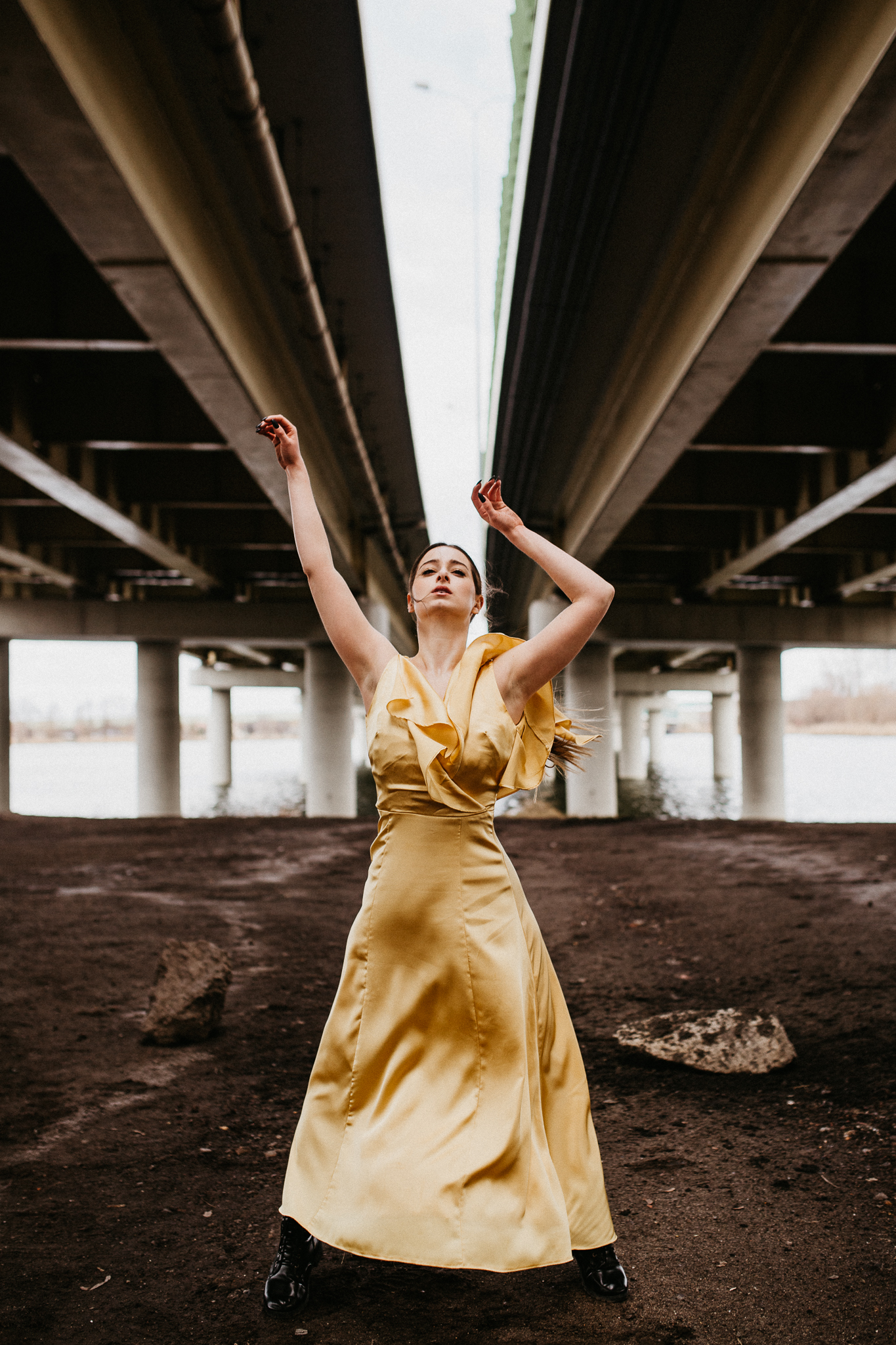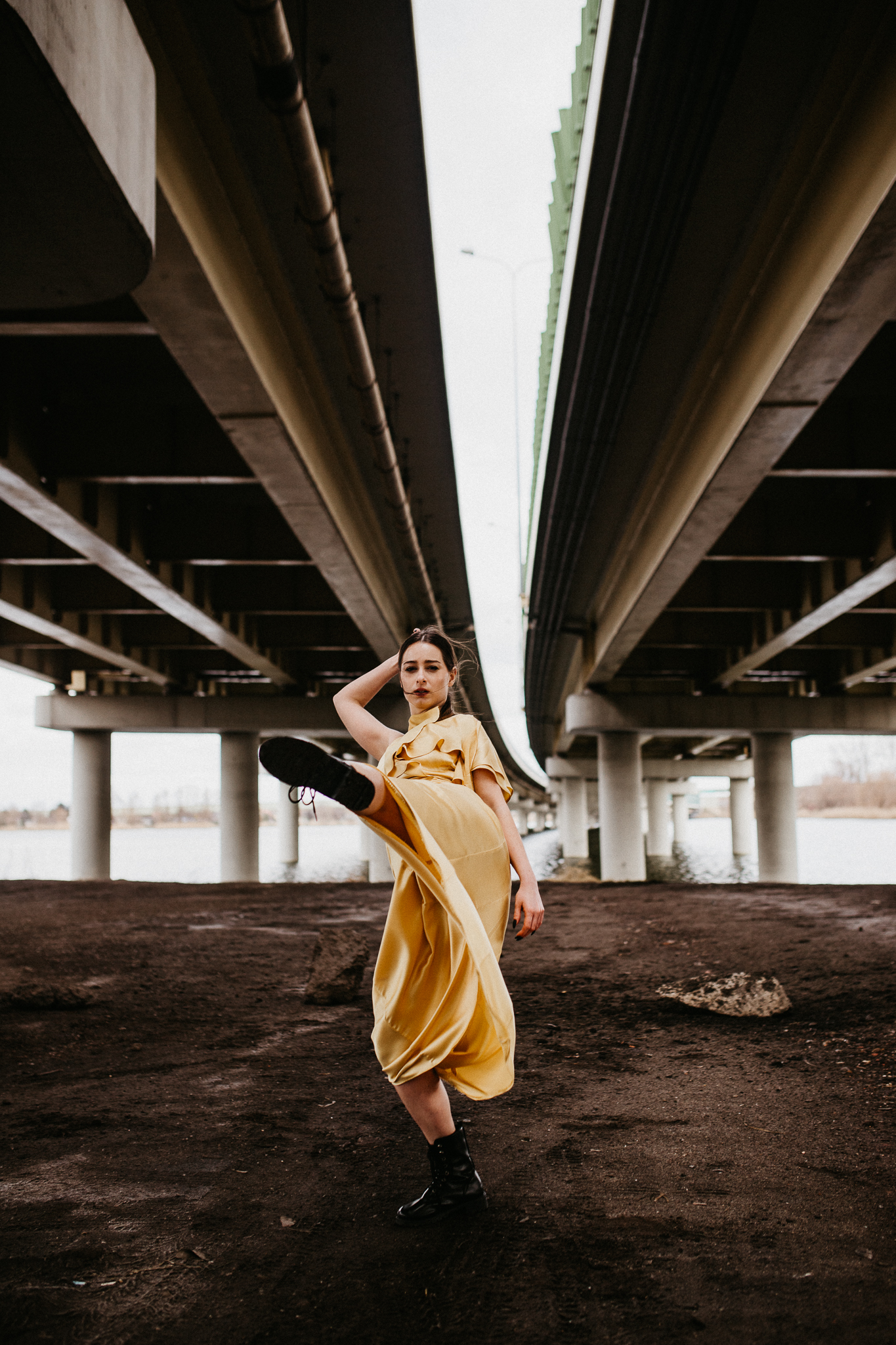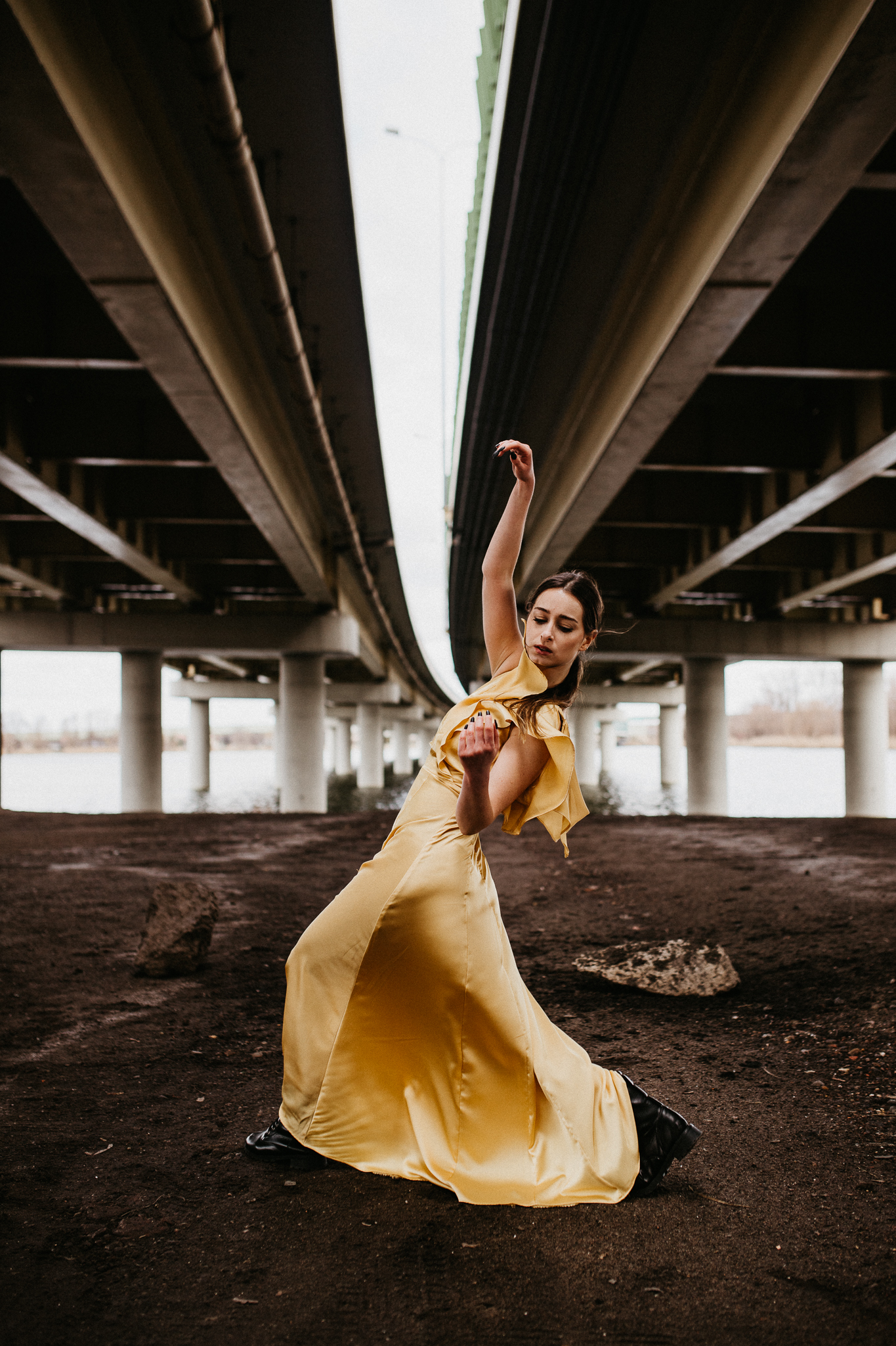 Najdrożej sprzedaje się sztuka, a sztukę tworzą profesjonaliści! Piękna modelka w złotej aksamitnej sukni na tle betonowego, ogromnego mostu. Wnioskując, chciałaby pokazywać