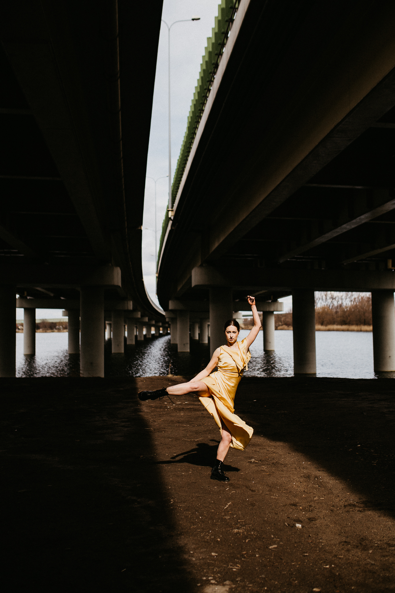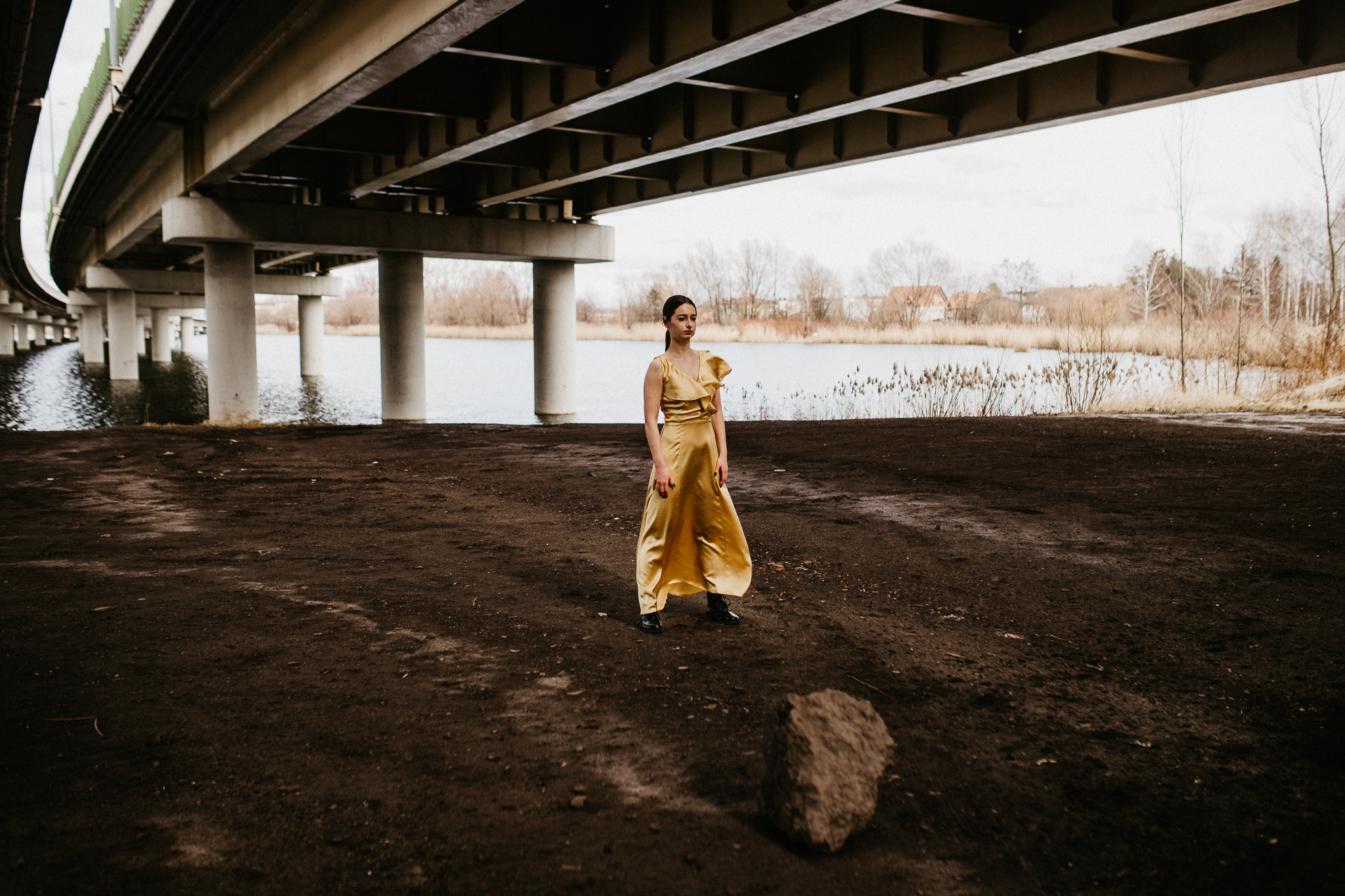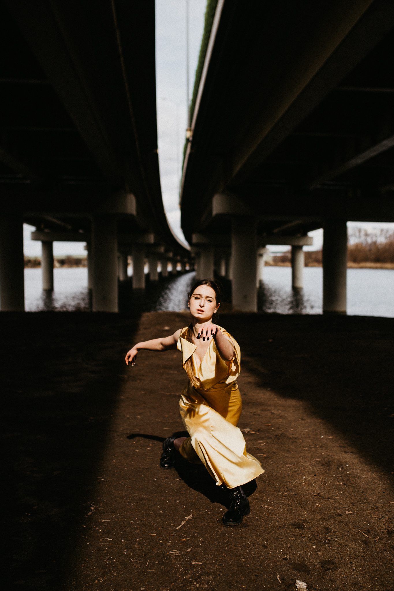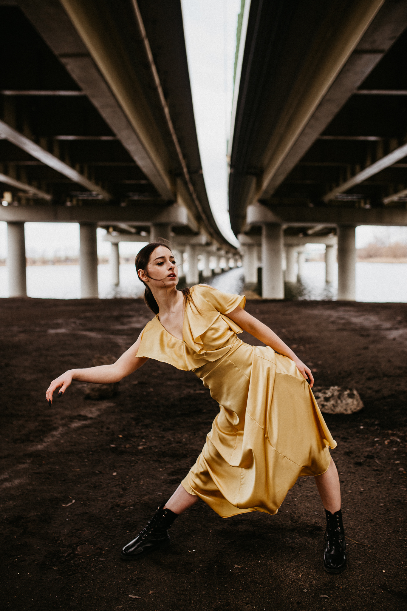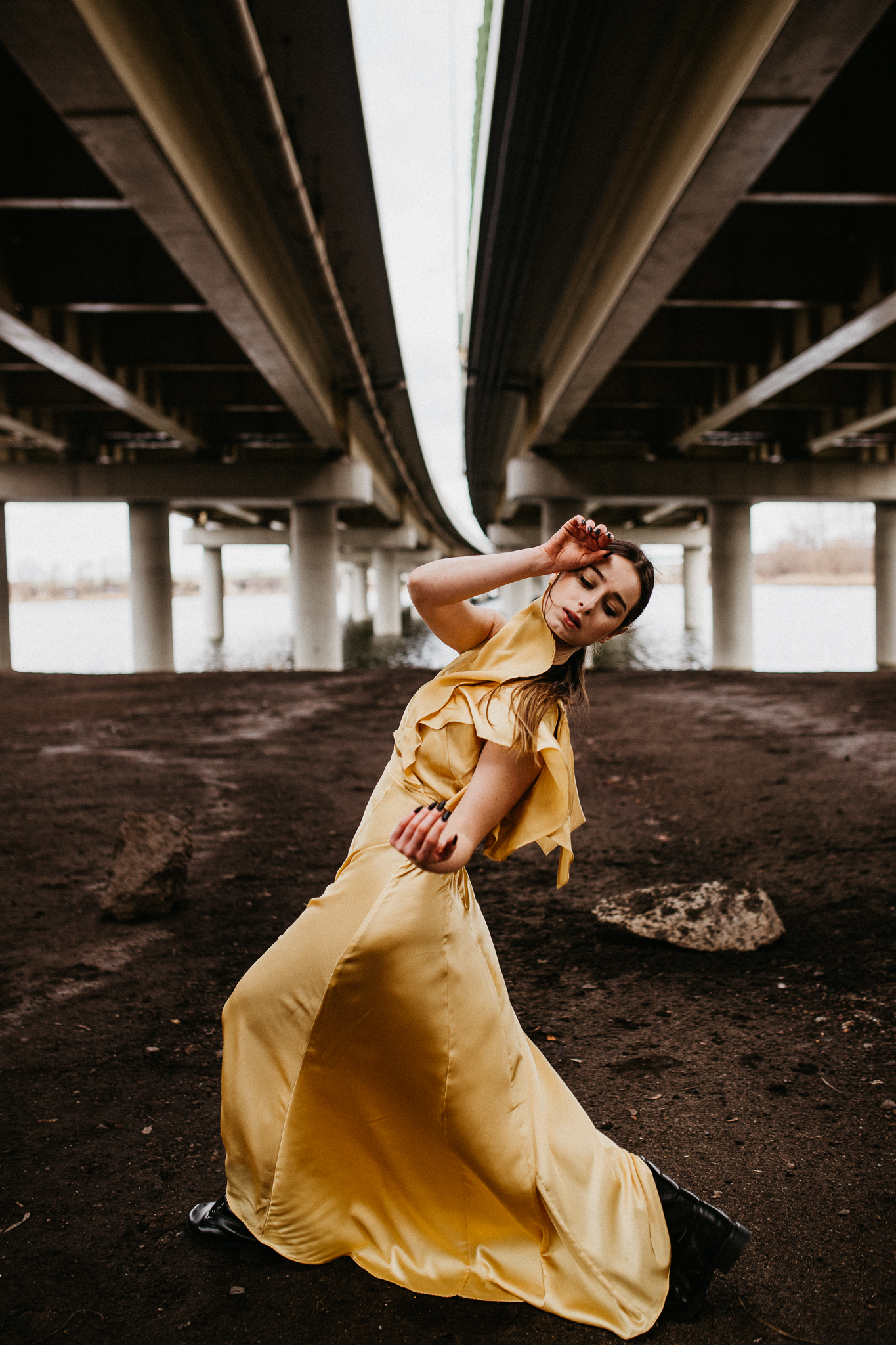 Najdrożej sprzedaje się sztuka, a sztukę tworzą profesjonaliści! Piękna modelka w złotej aksamitnej sukni na tle betonowego, ogromnego mostu. Wnioskując, chciałaby pokazywać