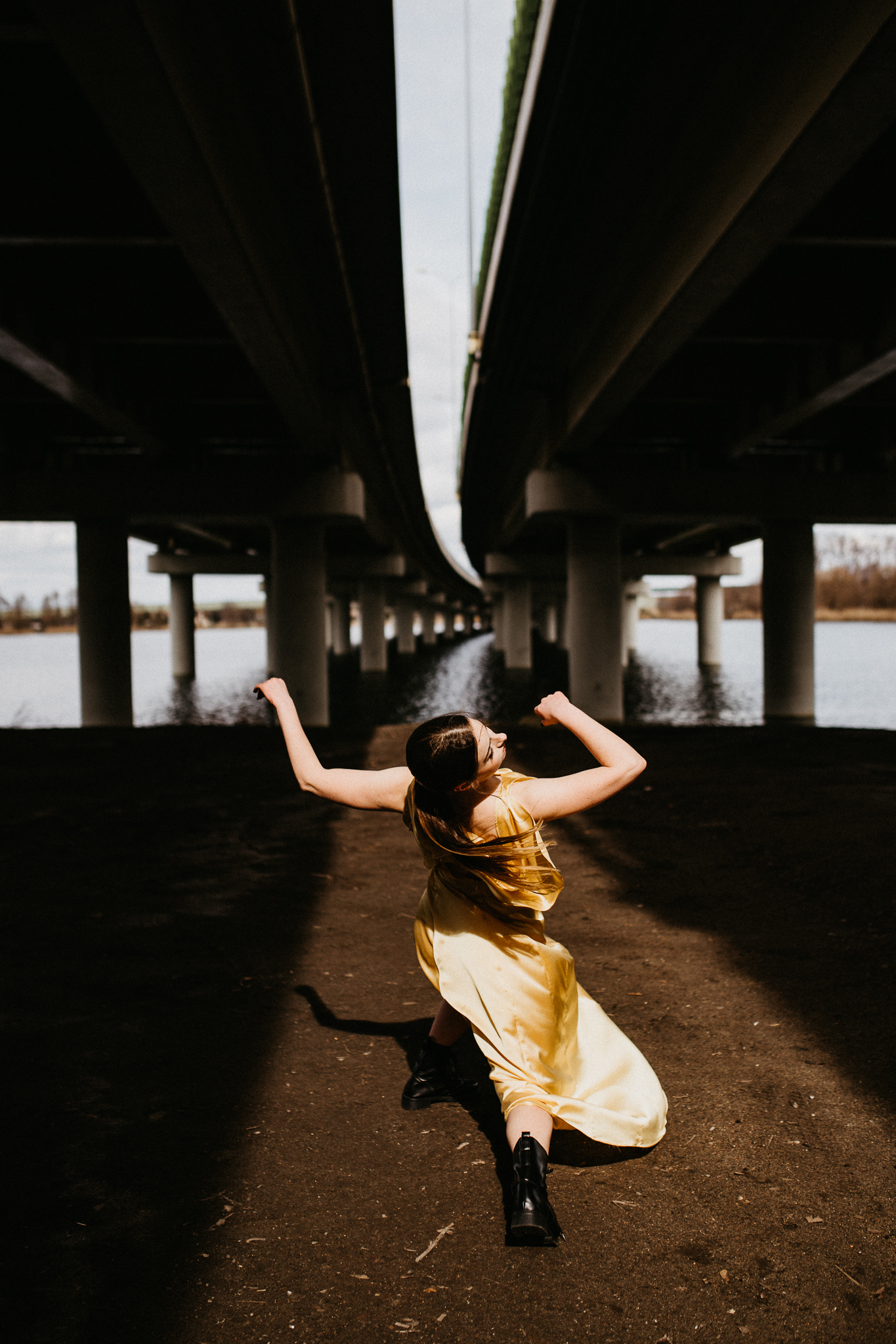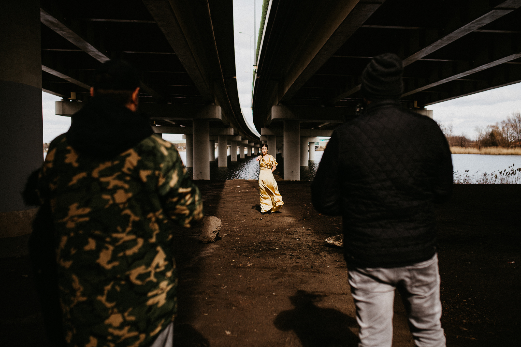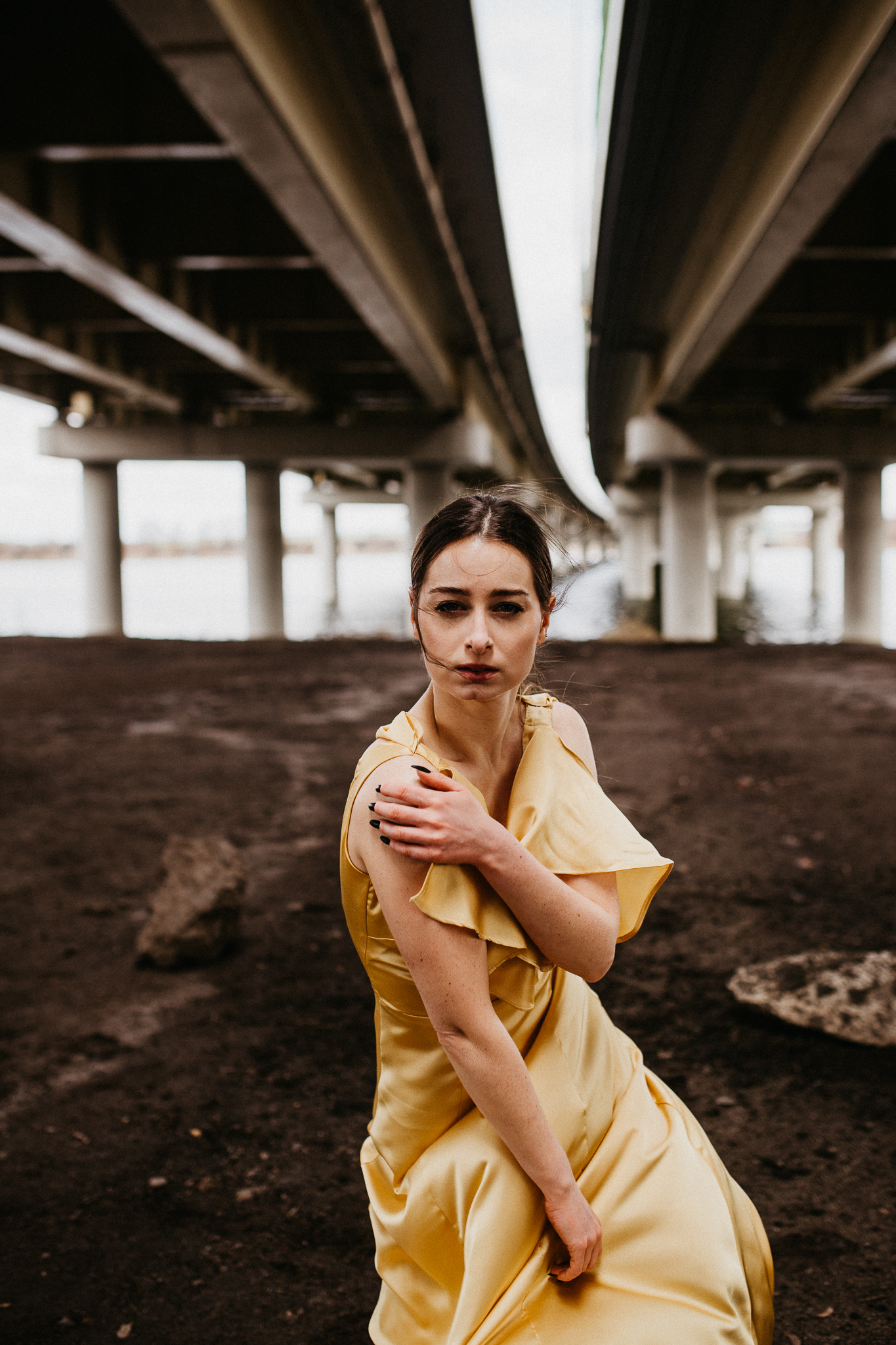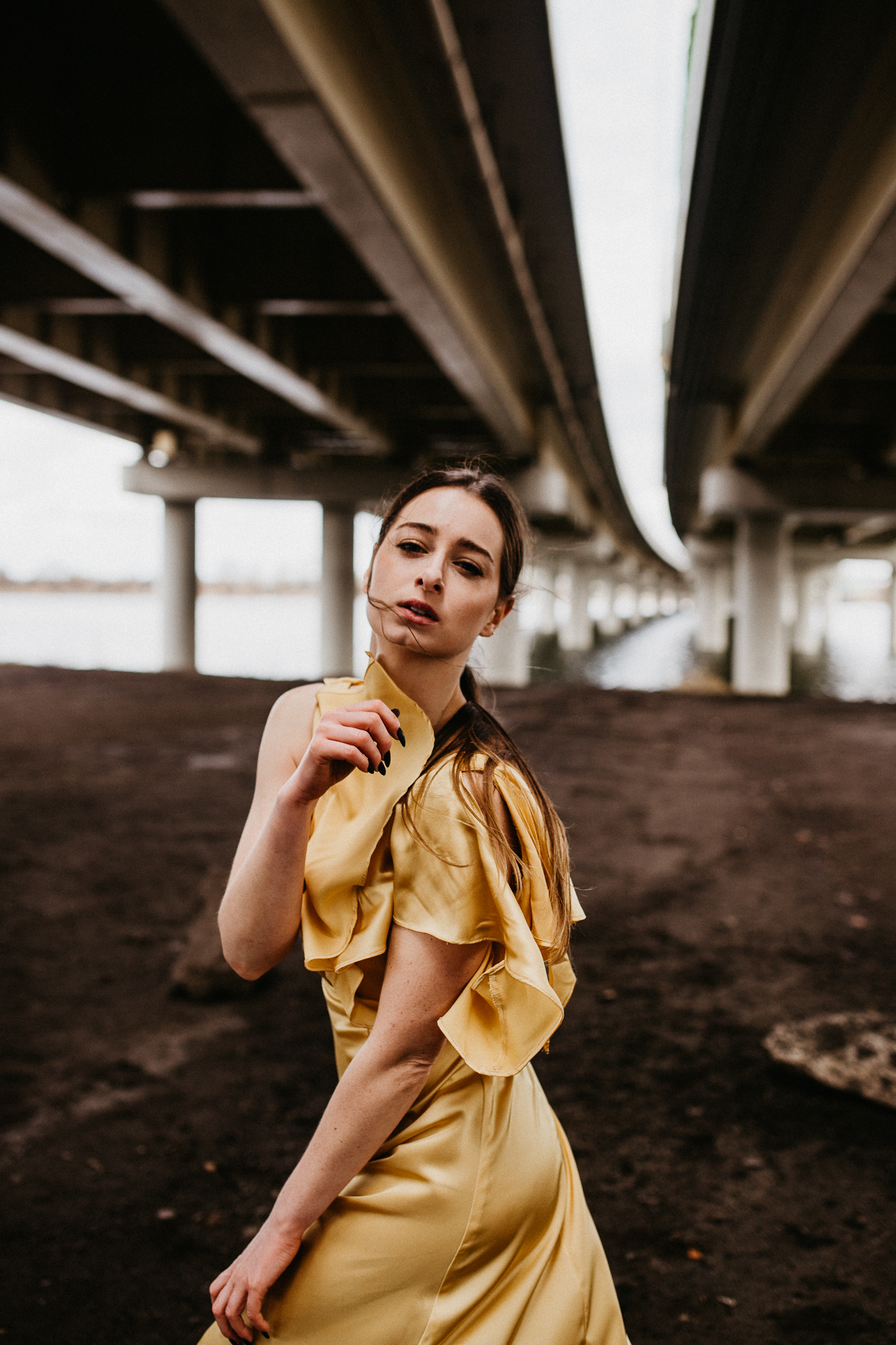 Najdrożej sprzedaje się sztuka, a sztukę tworzą profesjonaliści! Piękna modelka w złotej aksamitnej sukni na tle betonowego, ogromnego mostu. Wnioskując, chciałaby pokazywać