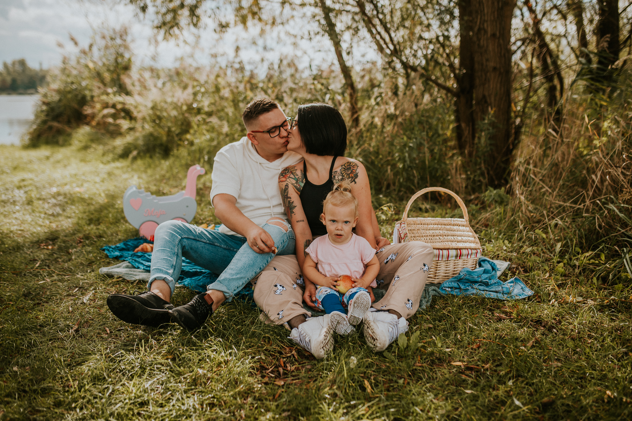Załóżmy, że event nie do końca jest spontaniczny i został zaaranżowany do celów sesji tak jak tutaj. Jak przygotować się do takiej sesja lifestyle z rodziną podczas pikniku? Przede wszystkim zabierz ze sobą co najmniej dwie stylizacje. W rezultacie, jeżeli sesja nie jest stylizowana jakimś konkretnym pomysłem, strój nie ma większego znaczenia. Ważne jednak jest, by fotografowane osoby czuły się dobrze. Czasami może się zdarzyć, że nasz strój kompletnie nie komponuje się z otoczeniem, dlatego warto mieć coś na zmianę. I pamiętajcie o tym, że zawsze warto mieć w portfelu agrafkę- potrafi uratować z nie jednej opresji w życiu (nie tylko w życiu fotografa).
