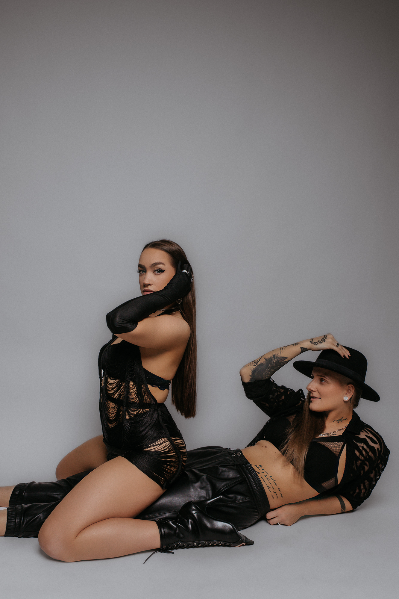 Baddiegyals to Magda i Daria, para dziewczyn, tancerek mieszkających w Niemczech. Dziewczyny pochodzą z mojego rodzinnego miasta Knurowa. Co robią? Jak żyją? Tego najszybciej dowiesz się z ich profilów społecznościowych na Youtube, TikToku i Instagramie. Oprócz tego, że propagują wolność, pięknie tańczą i kochają się. Z sukcesem prowadzą także swoją działalność społeczną w sieci. Często jednak są oceniane, że robią to w sposób kontrowersyjny. Ale nie jestem tutaj po to, by je oceniać. Ja je szanuję i cieszę się, że dziewczyny mają odwagę, by działać i sprzeciwiać się całemu światu- jak widać- z sukcesem! Dlatego było mi bardzo miło, móc fotografować sesję sensualną a dodatkowo także była to sesja z influencerem dwóch szalonych kobiet. Obiecuję Ci, że dzisiejsza sesja ma nie tylko inny wymiar, dlatego, że jest po prostu inna niż wszystkie sesje sensualne, ale przede wszystkim dlatego, że dziewczyny odprawiły podczas sesji w moim studio prawdziwe show! Zresztą zobacz sama, pod postem znajdziesz najpiękniejsze kadry.
