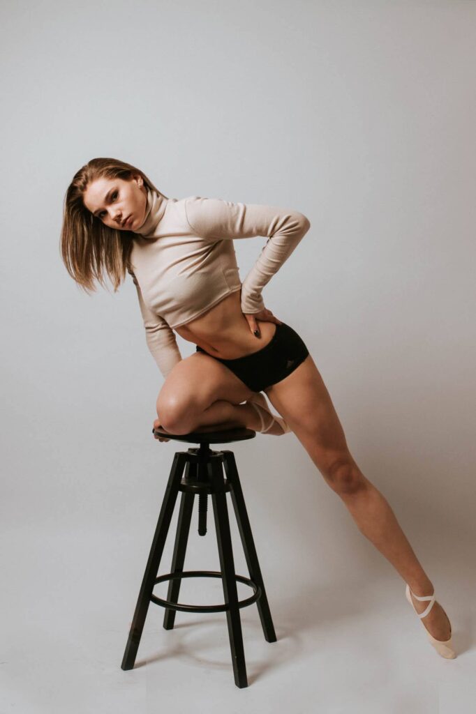 Planowanie fotograficznej sesji gimnastycznej wymaga uwzględnienia kilku istotnych elementów, które pomogą w osiągnięciu pożądanych rezultatów. Najważniejsza jest lokalizacja. Wspólnie z gimnastykiem ustalam, czy ma to być sala gimnastyczna klubu w którym trenuje, czy może inne miejsce. Z Emilią wybrałyśmy moje studio fotograficzne. Emilia jest filigranową dziewczyną zatem z przestrzenią nie było problemu, a dzięki temu mogłyśmy pozwolić sobie na profesjonalizm jeżeli chodzi o tło i oświetlenie. Następnym ważnym aspektem jest harmonogram takiej sesji. Ilość figur, ujęć, strojów, a także odpoczynek dla gimnastyka to punkty o których trzeba koniecznie pamiętać. Warto także zaznajomić się z tym, co gimnastyczka chce robić, po pierwsze żeby móc zadbać o jej bezpieczeństwo, a także móc stworzyć piękne ujęcia w oparciu o wiedzę na temat tego, co w danym czasie gimnastyczka chciałaby pokazać.