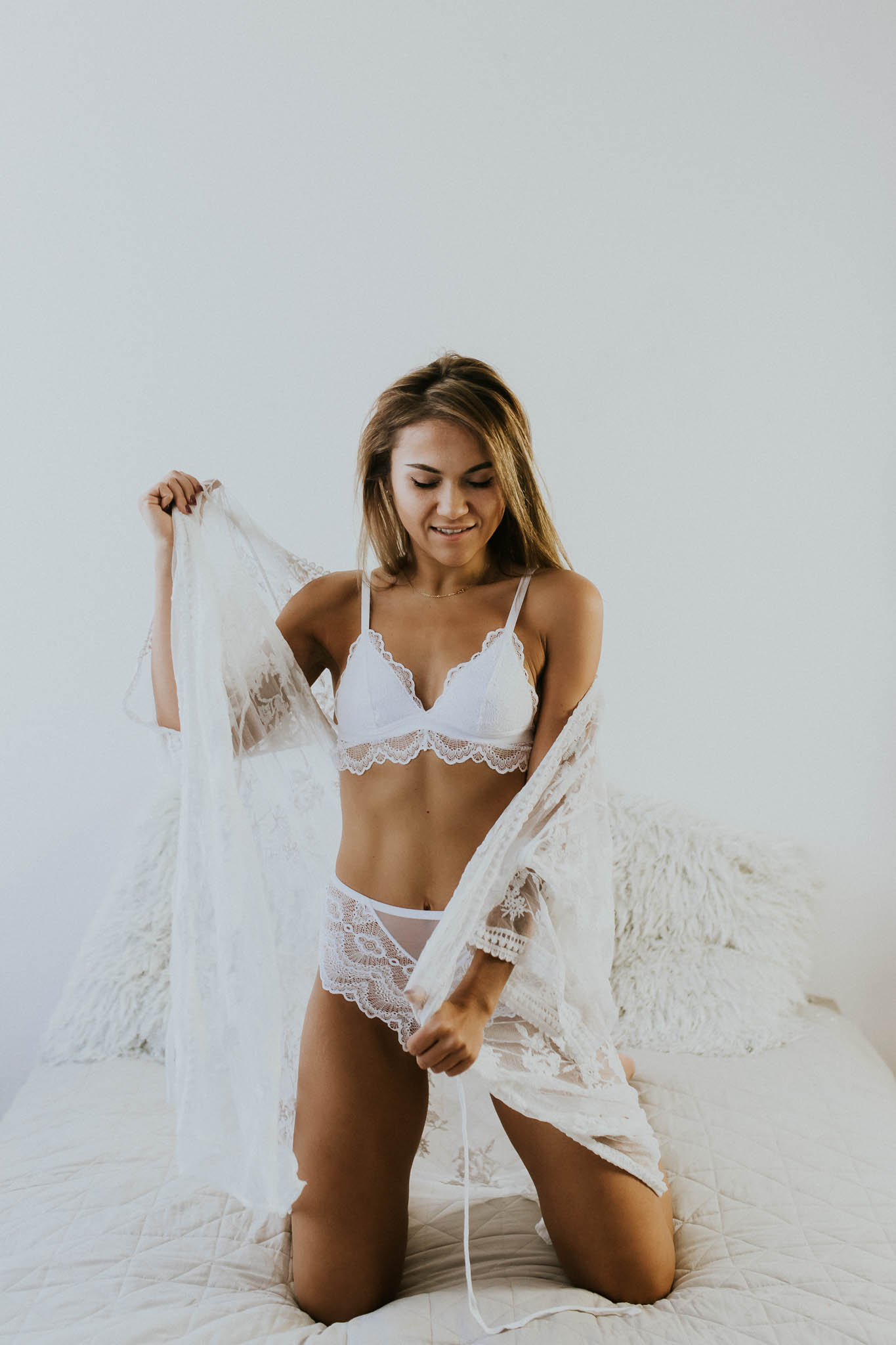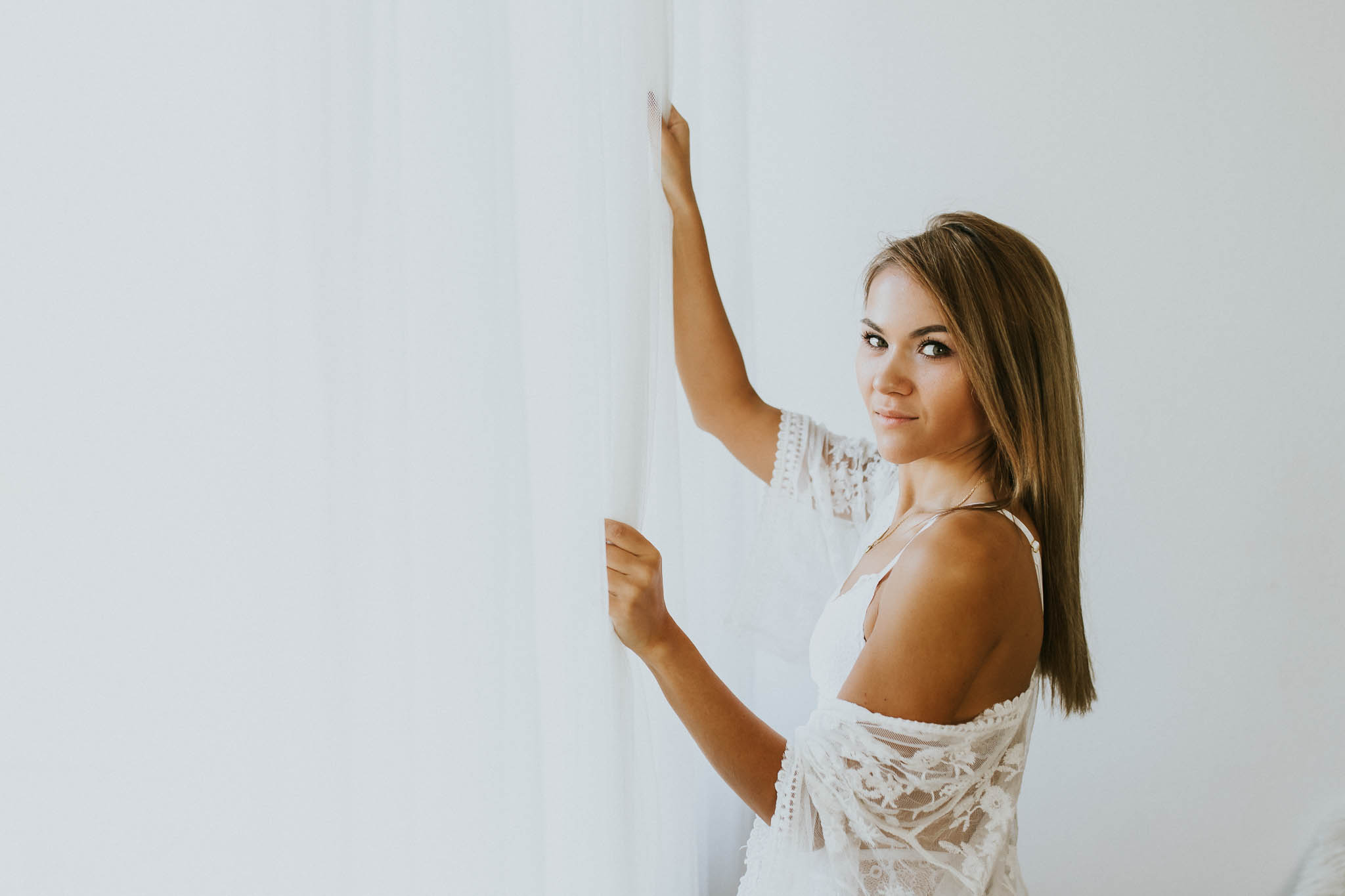 Zdecydowanie powinnaś zabrać plecak dobrego humoru i pozytywnego nastawienia. Jeżeli będzie Ci coś dolegać, będzie to niestety widać na zdjęciach. Następnie zabierz wodę mineralną, przekąskę, szminkę, puder oraz grzebień/ szczotkę. To przyda Ci się do małych ad hock’owych poprawek na miejscu. Ostateczny efekt sesji w dużej mierze zależy także od Twojego przygotowania. Wszelkiego rodzaju gadżety takie jak okulary, chustki, nakrycia głowy, gumki do włosów czy kwiaty we włosach mile widziane, nie zawsze zostanie to wykorzystane, jednak prawie zawsze dodaje uroku i wykończenia zdjęciom. A na sesję sensualną zabierz swoją ulubioną bieliznę oraz body. Zbyt odważnie? Pozuj w jeansach i t-shircie, granice wyznaczasz Ty! Moimi ulubieńcami ubraniowymi są: biała koszula, oversizowy sweterek i klasyczna marynarka. Z przyjemnością pomagam w doborze stylizacji. Zabierz ze sobą całą walizkę, a skomponujemy coś odpowiedniego. Służę też moją studyjną szafą, która obfituje w bodziaki, sukienki, narzutki i koronki- a to wszystko do Twojej dyspozycji.