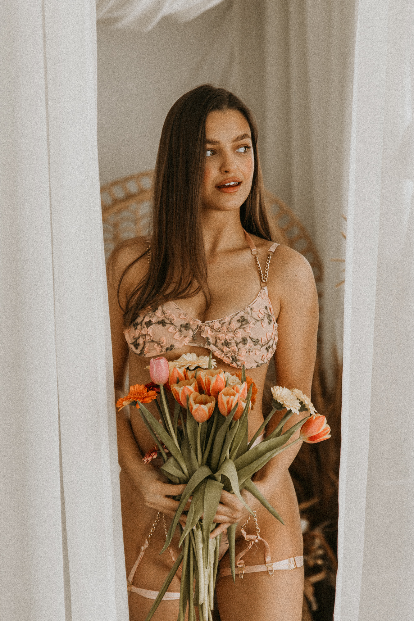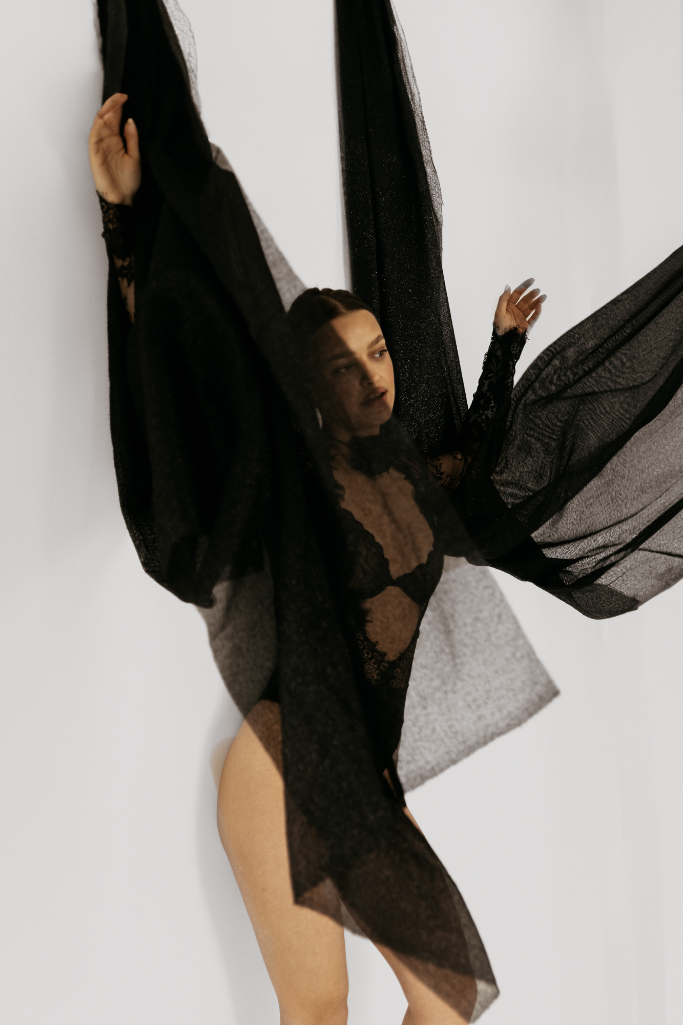 Sesja buduarowa z odpowiednio dobranymi akcesoriami może znacząco wpłynąć na efekt końcowy zdjęć, dodając im głębi, charakteru i wyrazistości. Wybór odpowiednich akcesoriów, takich jak biżuteria, kapelusze, rękawiczki czy pończochy, może nadać sesji buduarowej określony charakter. Na przykład, elegancka biżuteria może nadać sesji bardziej luksusowego i wyrafinowanego wyglądu, podczas gdy odważne dodatki mogą dodać elementu zaskoczenia i niekonwencjonalności. Wybór akcesoriów może również pomóc w podkreśleniu unikalnych cech osobowości modelki. Na przykład, subtelna biżuteria może podkreślić delikatność, podczas gdy odważne kolczyki mogą wyrazić pewność siebie. Dobrze dobrane akcesoria mogą dopasować się do stylizacji ubraniowej modelki, komplementując jej ubiór i tworząc spójną całość. Na przykład, buty i torebka mogą harmonizować się z resztą outfitu, tworząc zbalansowaną kompozycję. Podczas moich autorskich warsztatów sesji buduarowych strzałem w dziesiątkę okazały się zdjęcia z czarnymi szarfami.