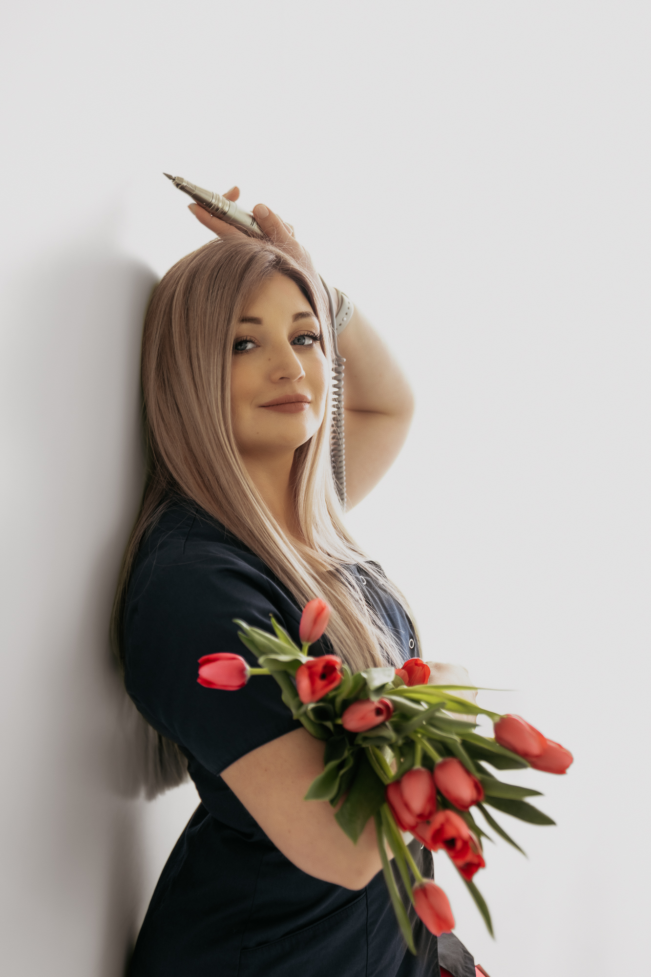 Profesjonalne zdjęcia wyróżniają się na tle amatorskich zdjęć, co może przyciągnąć więcej uwagi do Twojego profilu, czy strony internetowej. Dobrze wykonane zdjęcia pomagają w budowaniu spójnego i atrakcyjnego wizerunku, który odzwierciedla Twoje kompetencje i profesjonalizm. Dodatkowo mogą być wykorzystywane przez długi czas w różnych materiałach promocyjnych i marketingowych, co czyni je wartościową inwestycją. A ja ze swojej strony, podczas przygotowań do takiej sesji oferuję dodatkowo pomysł na motyw przewodni sesji, dzięki któremu można stworzyć np. spójny feed na Instagrama. Z Weroniką zadbałyśmy o spójną kolorystykę, ale także o przedstawienie jej jako kobiety delikatnej, eleganckiej, sympatycznej i godnej zaufania. Zaznaczyłyśmy także, że ma fach w swoich rękach!