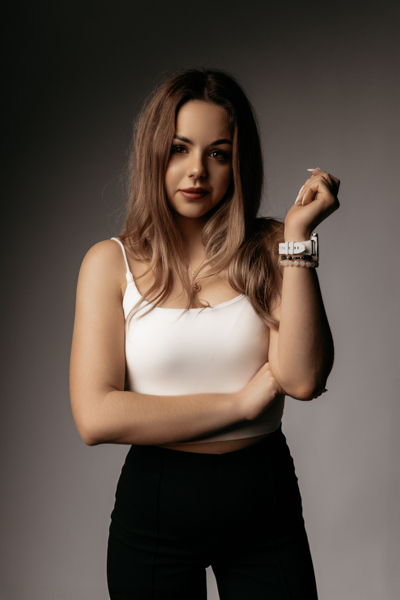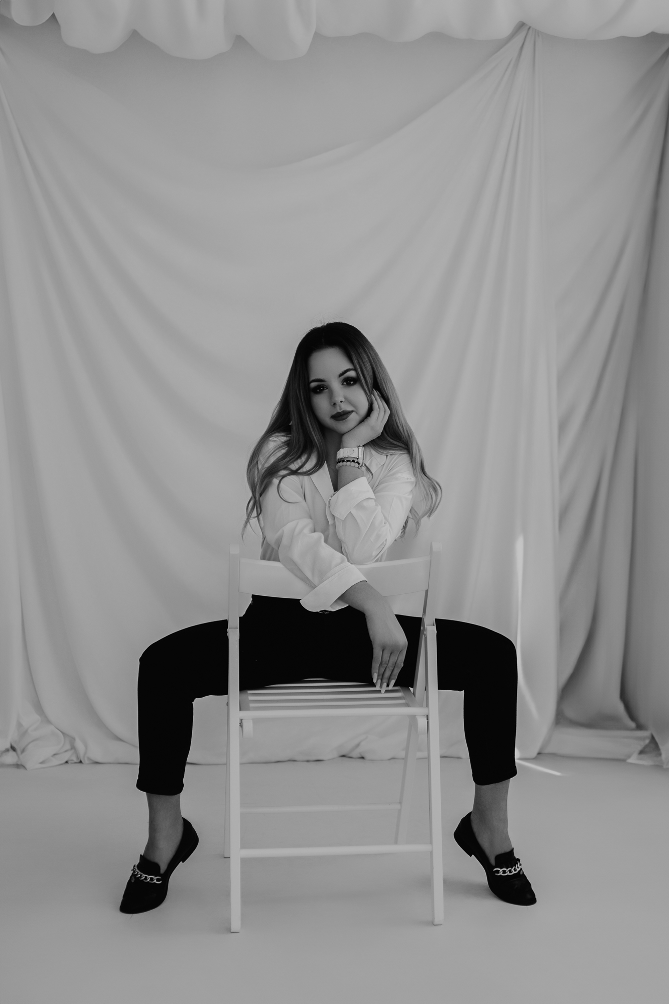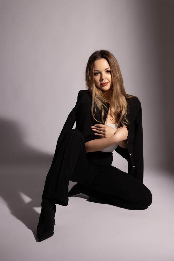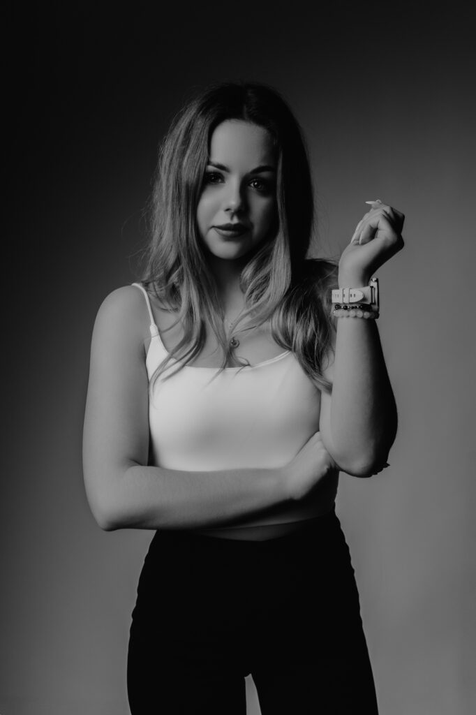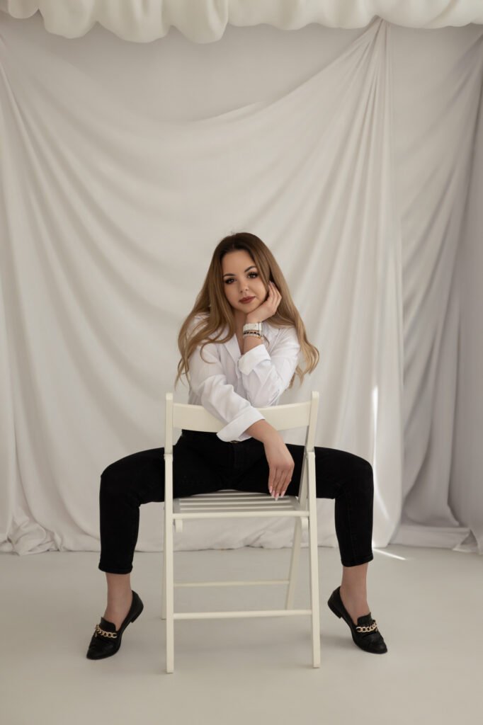 Postawiliśmy na naturalne światło, by oddać prawdziwy charakter i blask bohaterki sesji. Jasne, neutralne tło eksponowało Patrycję, bez zbędnych rozpraszaczy.