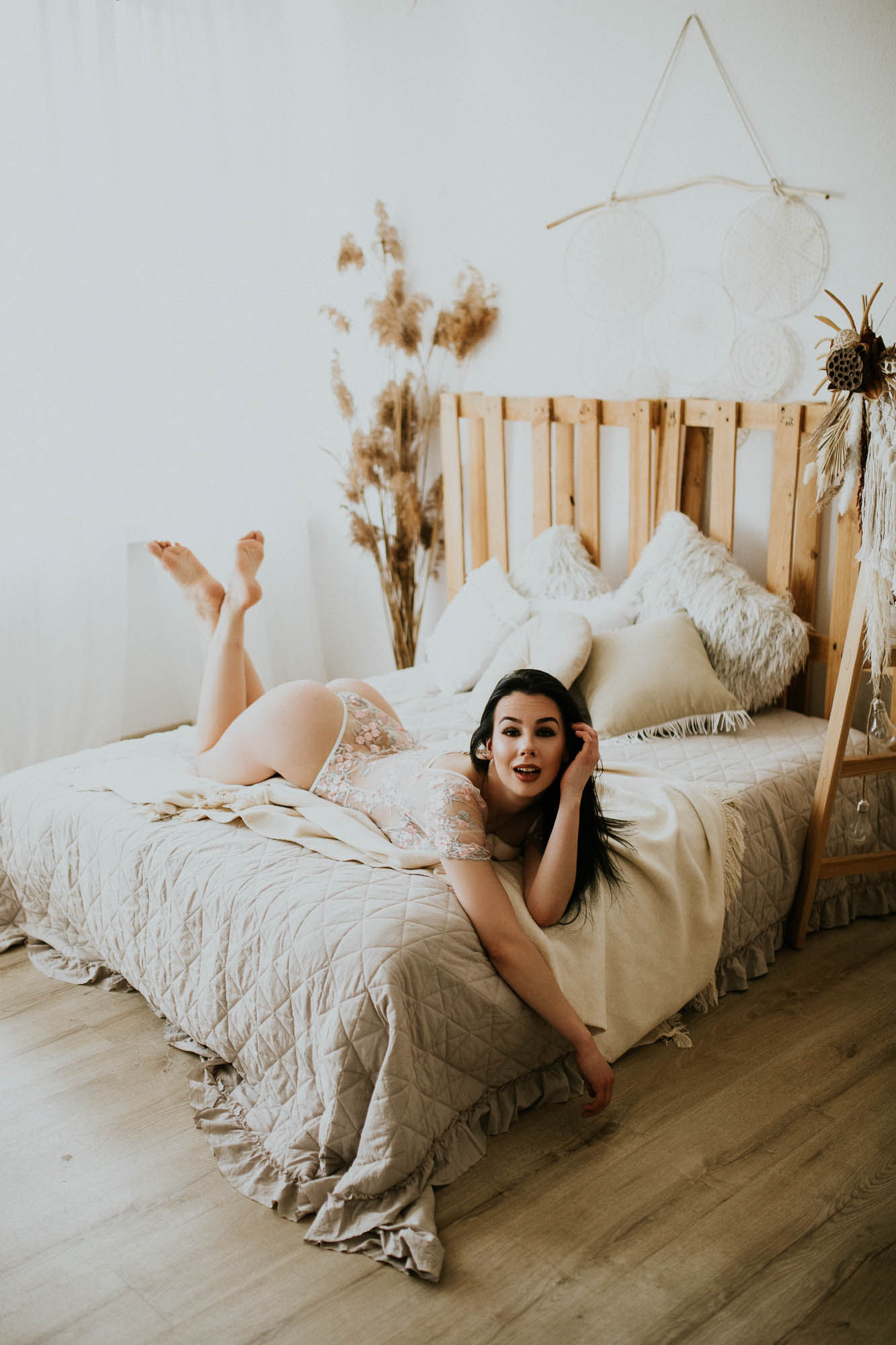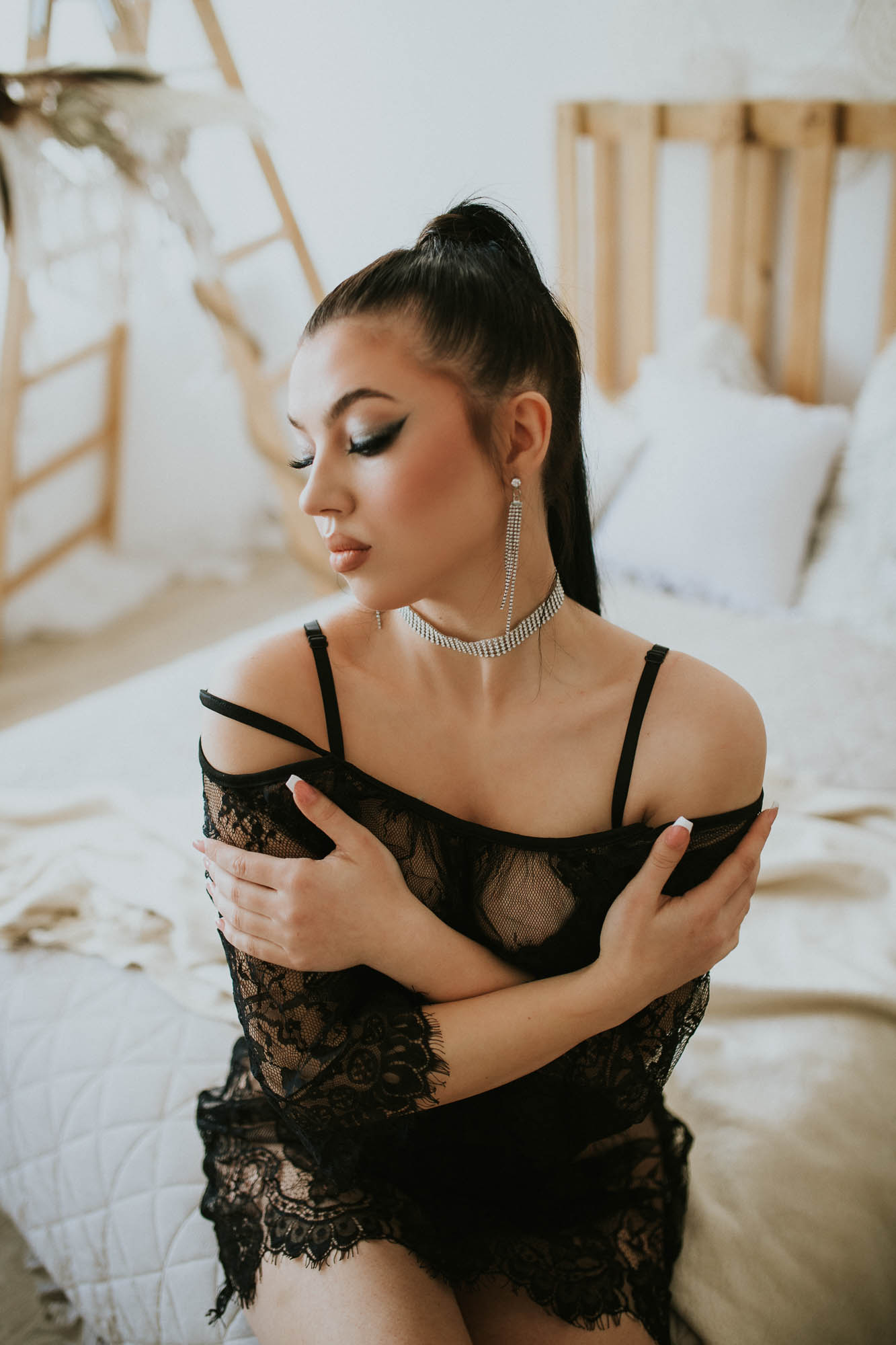 Przygotowania należy zacząć jak zawsze od przygotowania swojego portfolio. Ja wybieram zawsze na warsztaty jedną profesjonalną modelkę, a jedną dziewczynę, która nie miała nigdy profesjonalnej sesji. Dlaczego? Dlatego, że charakter pracy jest zupełnie różny. Zazwyczaj kiedy pojawi się informacja o terminie warsztatów, pojawia się też casting na modelki. U mnie komunikatywność i zaangażowanie są kluczowe. Jeśli zaproszę Cię na warsztaty, przygotuj się na sesję zdjęciową, dbając o własny wizerunek i profesjonalizm. Bądź gotowa na współpracę z uczestnikami, słuchaj wskazówek i sugestii, oraz stawiaj czoła wyzwaniom z uśmiechem na twarzy. Taka współpraca działa zazwyczaj na zasadzie barteru. My korzystamy z Twojego wizerunku, a Ty korzystasz z pięknych zdjęć. Więcej o współpracach TFP możesz przeczytać na jednym z moich archiwalnych wpisów. Znajdziesz go tutaj. Jeżeli po przeczytaniu tego wpisu wiesz, że chciałabyś znaleźć się na miejscu Oli na kolejnych warsztatach, nie ma problemu wyślij do mnie wiadomość na IG. Zostawiam Cię teraz z kobiecymi ujęciami Oli z zeszłorocznych warsztatów jeszcze w starym studio. Dodatkowo zgarnęłyśmy z Olą dzięki tej sesji publikację w magazynie, którą także tutaj zobaczysz. A na koniec załączam także kilka ujęć Weroniki- nieprofesjonalnej modelki. Jej zdjęcia też są urocze. Prawda?