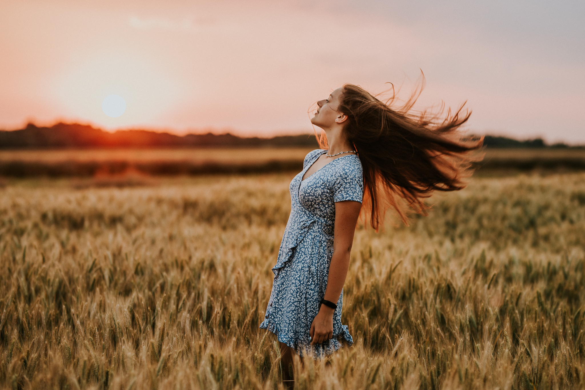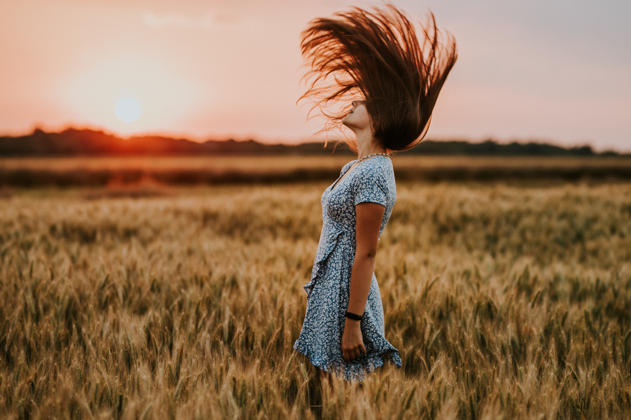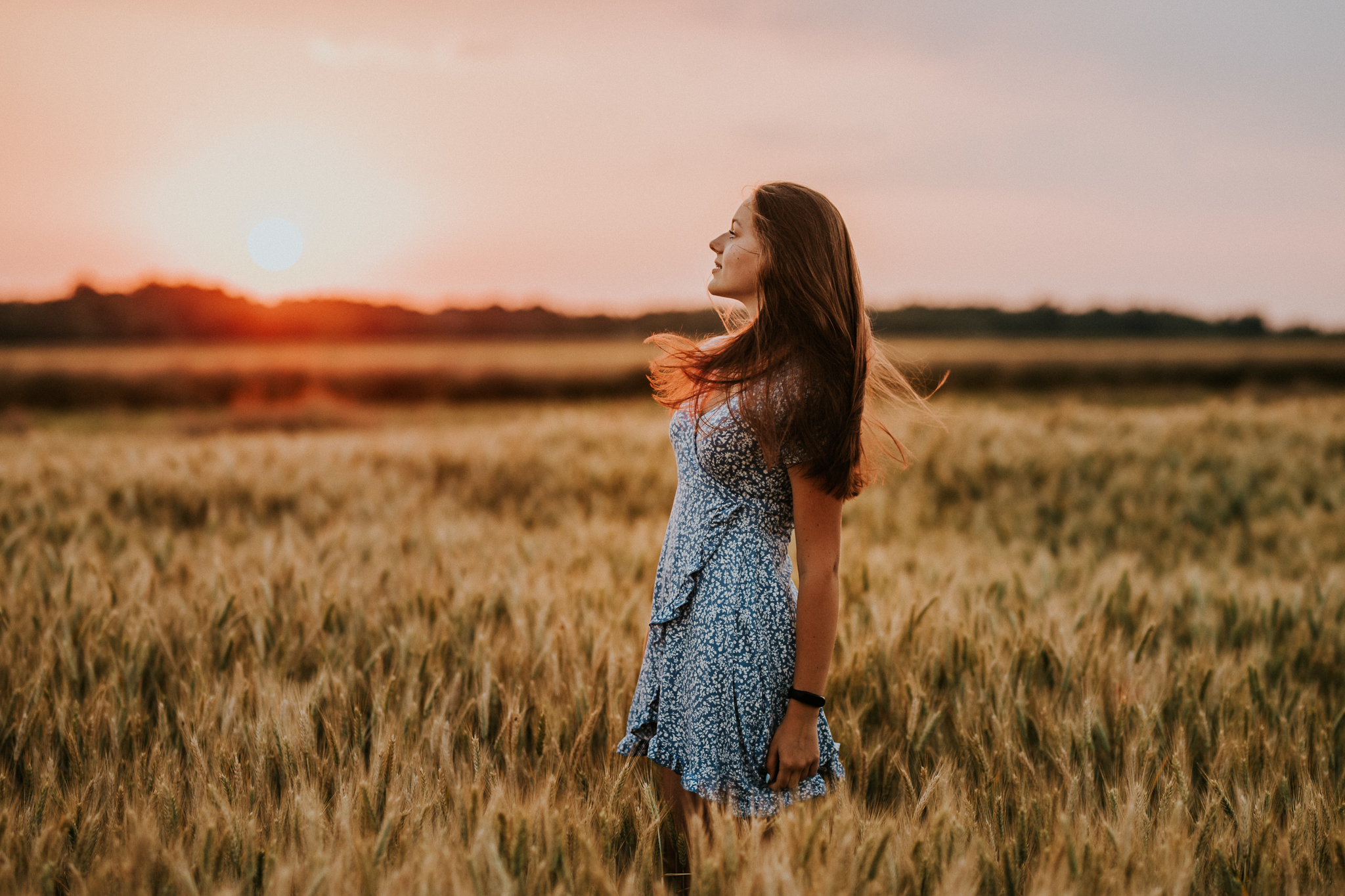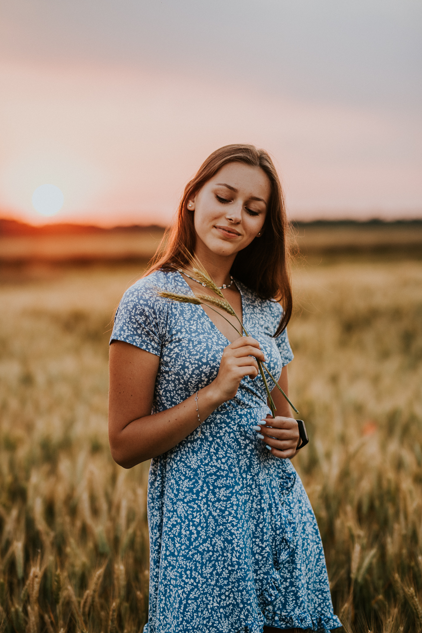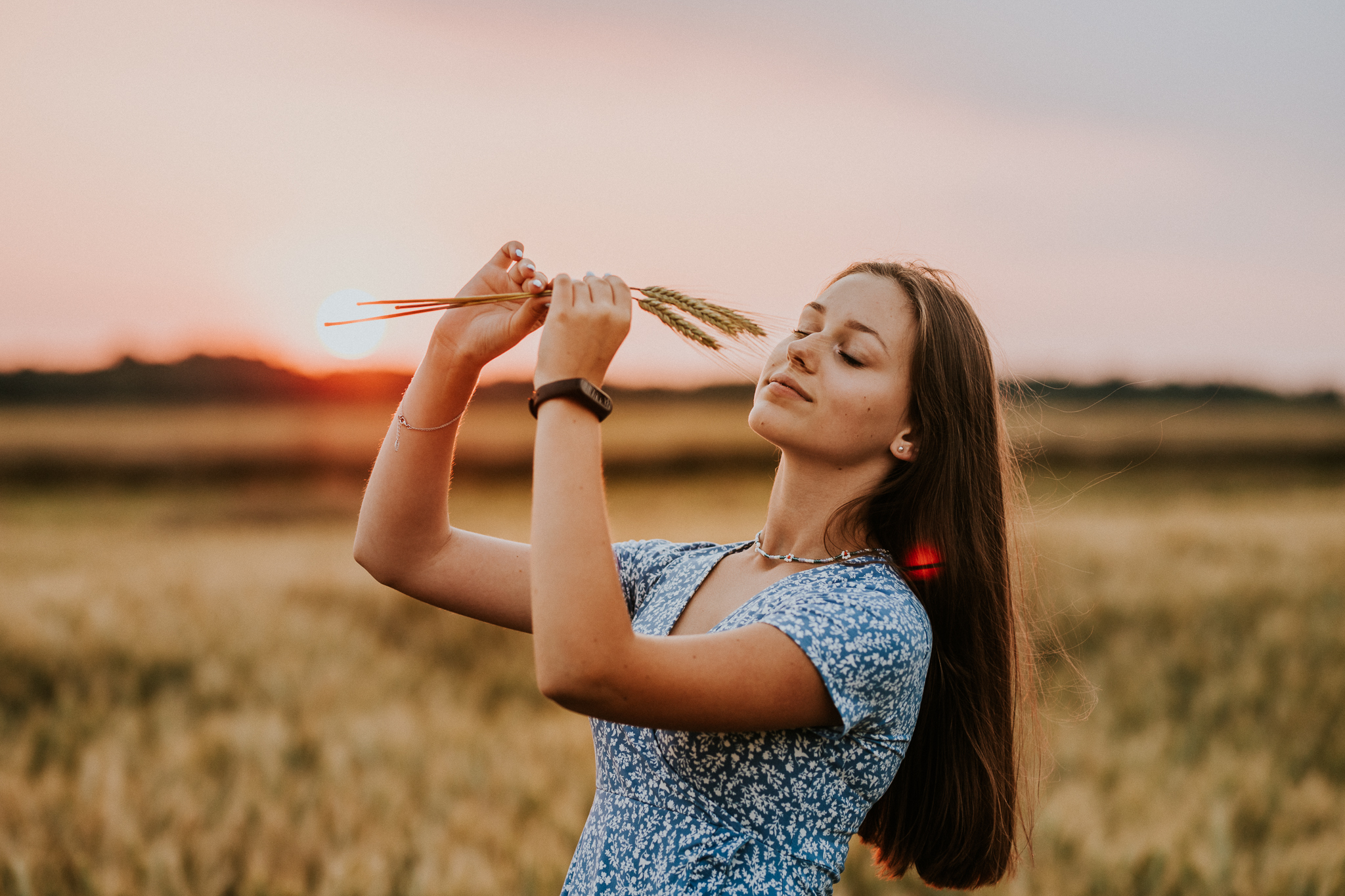 Kiedyś sesje portretowe kojarzyły się ze zdjęciami w studio na jednolitym tle. Teraz wykonuje się też zdjęcia portretowe w plenerze. Takie ujęcia chwytają za serce, ponieważ miejsce, które się fotografuje, tworzy klimat zdjęcia. Osoba fotografowana staje się wtedy kompozycją obrazu. I tak oto z Kingą wybraliśmy się za miasto w okolicach tzw. złotej godziny. Co to za godzina? To godzina, a w zasadzie kilkanaście minut, tuż przed zachodem słońca. Wtedy zobaczycie na zdjęciach obłędny cień słońca. Ujęcia te są niezwykle romantyczne. Zazwyczaj korzysta się z nich podczas sesji poślubnych czy narzeczeńskich. Kinga wykorzystała jednak złotą godzinę dla siebie! Ukazała nam się na zdjęciach delikatna, piękna nastolatka. Zdradzę Wam też, że sesja portretowa w plenerze ma szansę powodzenia tylko wtedy, jeżeli fotograf spełni wspólnie trzy techniczne parametry. Poprawna ostrość obrazu, poprawny bilans bieli oraz ekspozycja. A jak musi przygotować się model? Po pierwsze musi zastanowić się, w jakim miejscu chce wykonać sesję lub zdać się na pomysł fotografa. Musi to jednak zostać uzgodnione przed sesją. Odpowiedni dobór kreacji. Warto na sesję zabrać kilka ubrań, w których wyglądamy dobrze i dobrze się czujemy. Najlepiej w jasnych, stonowanych kolorach. Mamy wtedy pewność, że będziemy dobrze komponować się z otoczeniem. I na koniec pozowanie. Potrenuj uśmiech, taki który lubisz. Rozluźnij się i słuchaj uwag fotografa. On wie, co dobrze wygląda na zdjęciach.
