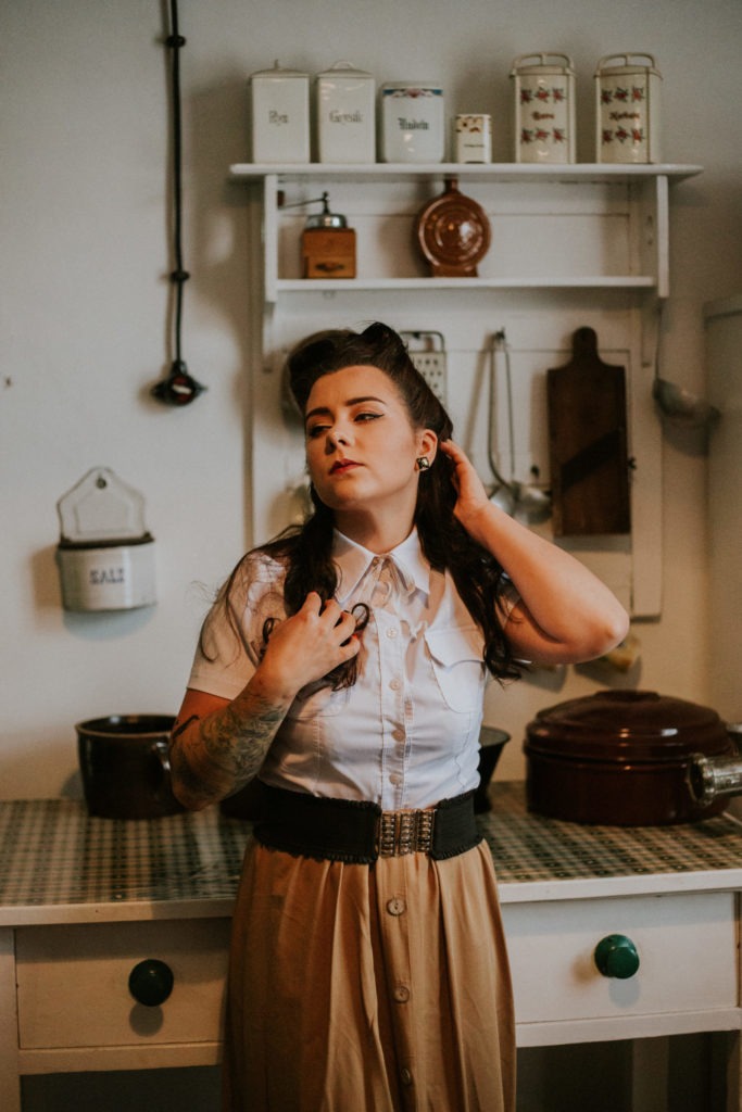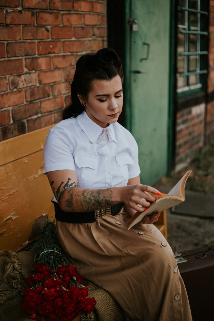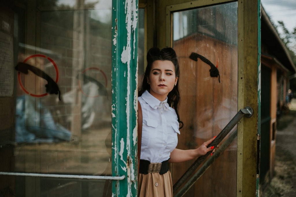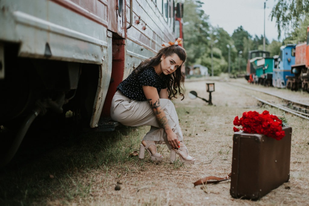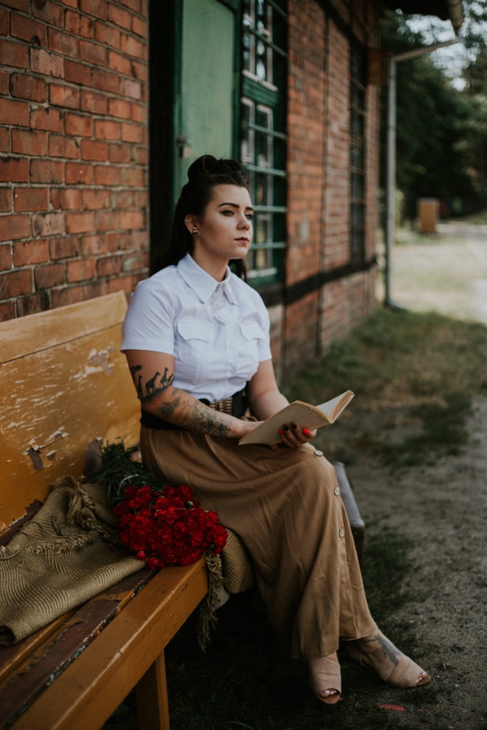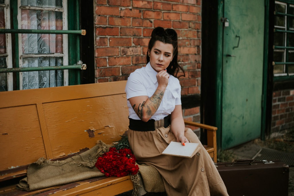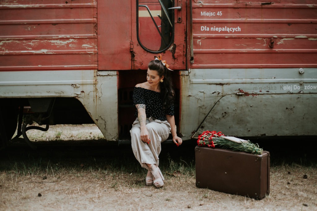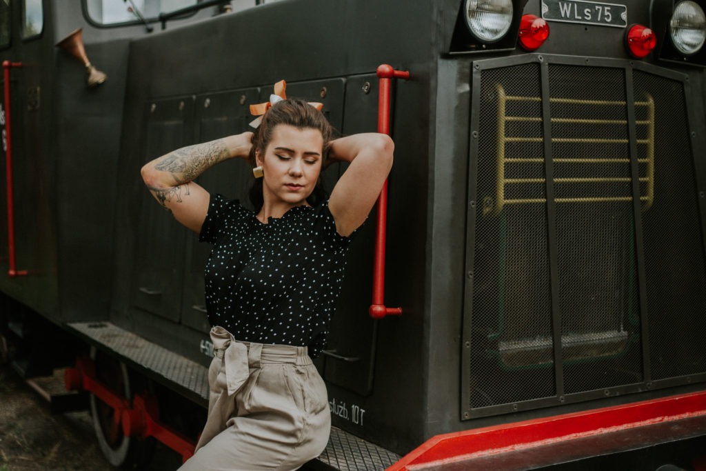 Stylizowana sesja portretowa Magdy – Kolejka Wąskotorowa Rudy – Kadry niczym z filmu o drugiej wojnie światowej.