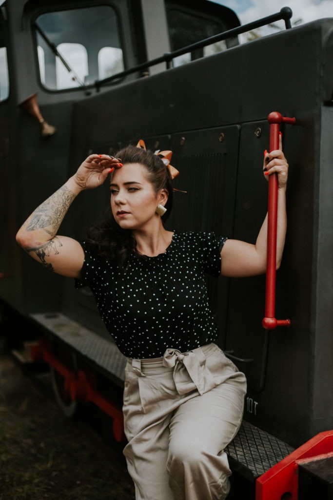 Do tej stylizowanej sesji zdjęciowej miałyśmy dwa podejścia. Za pierwszym razem… dwa gapcie nie sprawdziły godzin otwarcia Kolejki! No i się spóźniłyśmy, oczywiście nie była to niczyja wina… a nawet nas obu! Fajnie, bo zdążyłyśmy się poznać, więc można uznać, że pierwsze spotkanie to było spotkanie w celu ustalenia szczegółów na temat sesji zdjęciowej! 🙂