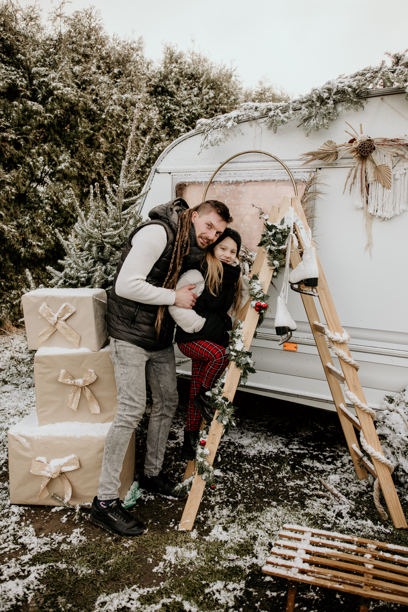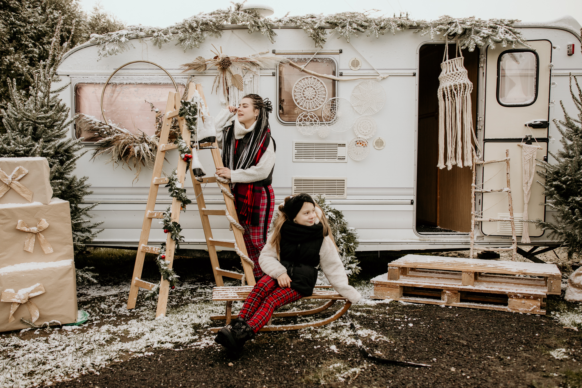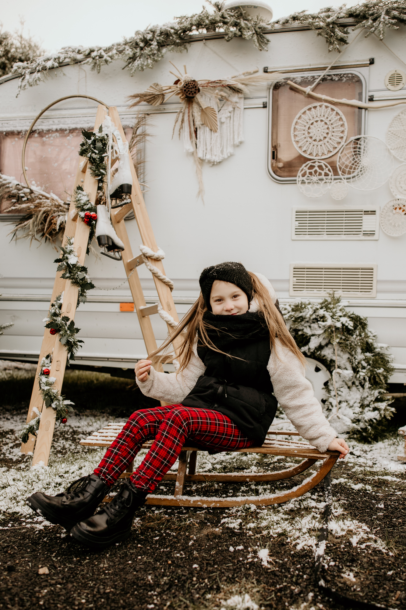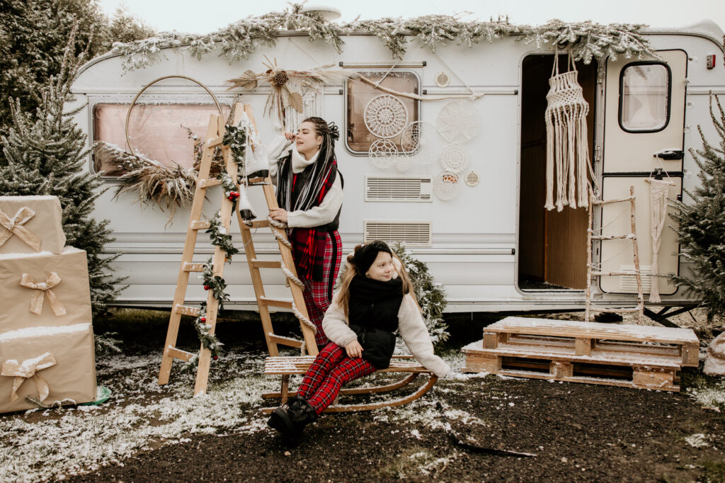 Moje mini sesje świąteczne są niepowtarzalne i wciąż czarują, często słyszę od Was, że zwykłe fotografie przeistaczam w świąteczne opowieści. W tym roku stworzyłam trzy różnorodne sceny, aby jeszcze bardziej Was zadowolić. Pierwsza scena, umieszczona w studio, ożywiła tradycję bożonarodzeniową za pomocą klasycznej choinki i łóżka, było dużo zieleni i czerwieni, a tło emanowało ciepłem i radością. Druga scena, również w studio, przywitała minimalistyczny styl ze stylowym wiankiem, co zapewniło elegancję i subtelność. Jednak to trzecia scenka, umiejscowiona na świeżym powietrzu z użyciem przyczepy kempingowej w stylu boho, okazała się prawdziwym hitem. Dekoracje i oryginalność przyczepy przyciągnęły więcej zainteresowanych, co doprowadziło do zwiększenia liczby sesji, niż pierwotnie planowałam. To właśnie połączenie różnorodnych scen, starannie dobranych detali i kreatywnej ekspresji pozwala mi na to, by radować pięknymi zdjęciami.