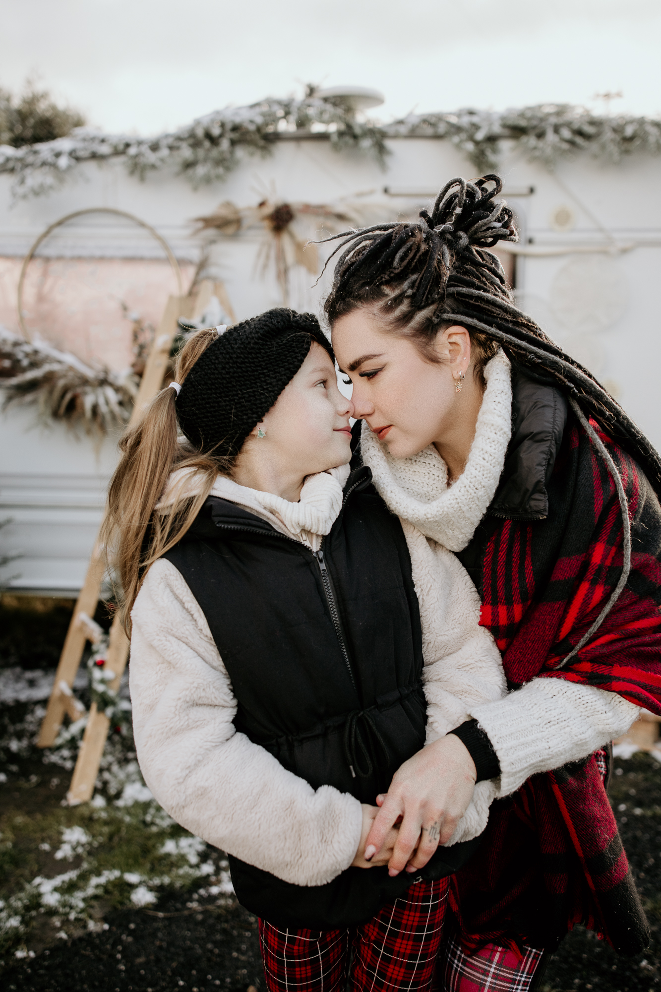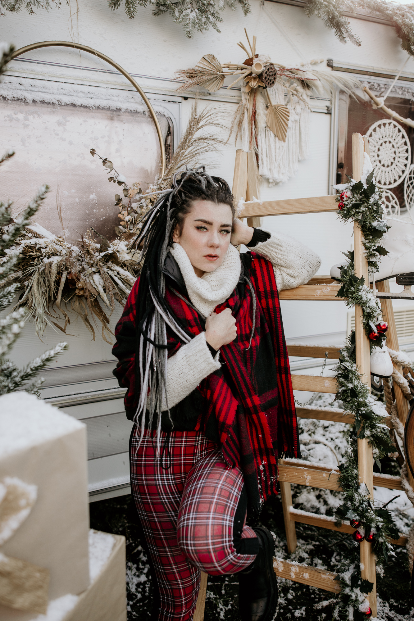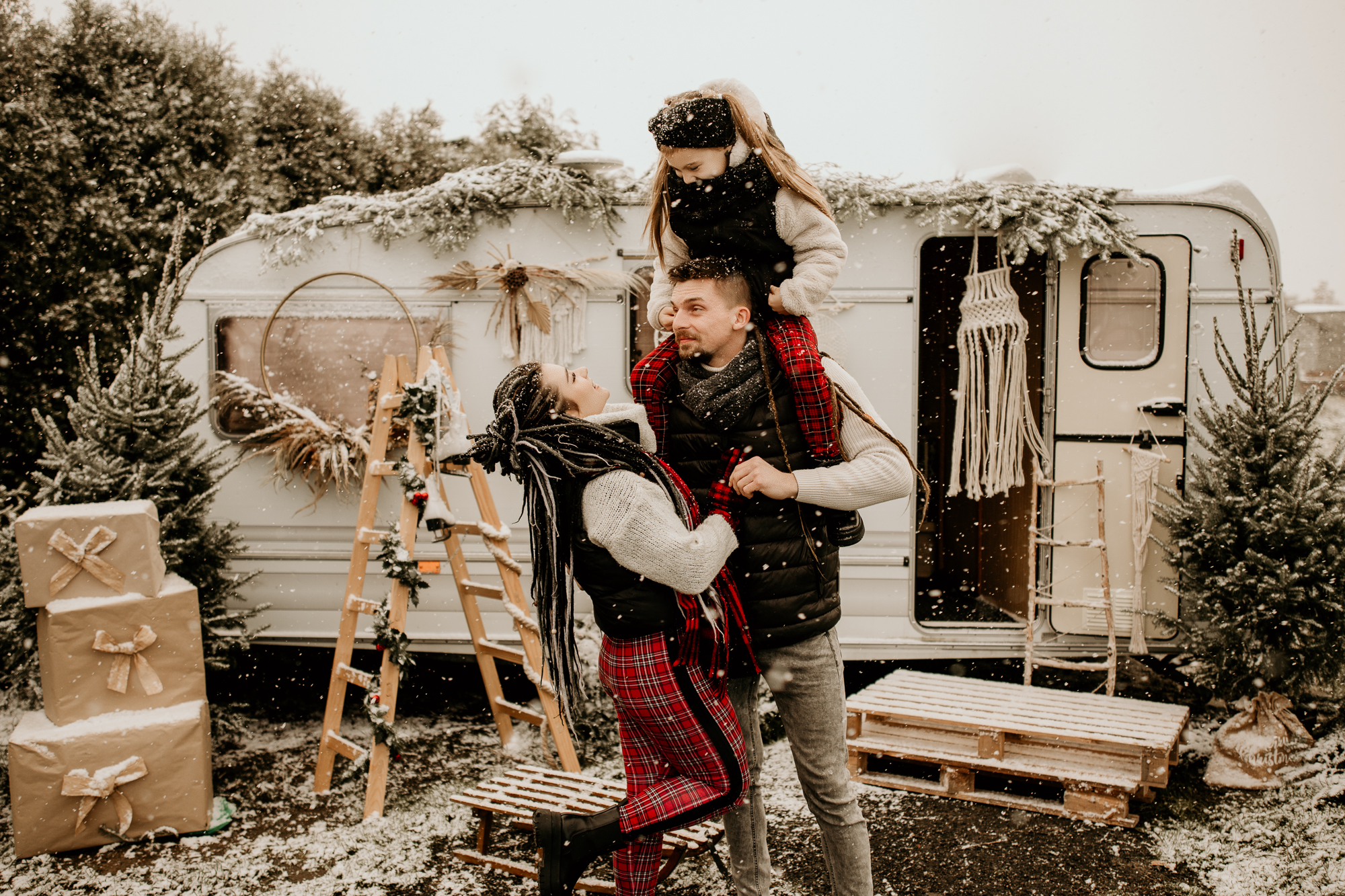 Moje mini sesje świąteczne są niepowtarzalne i wciąż czarują, często słyszę od Was, że zwykłe fotografie przeistaczam w świąteczne opowieści. W tym roku stworzyłam trzy różnorodne sceny, aby jeszcze bardziej Was zadowolić. Pierwsza scena, umieszczona w studio, ożywiła tradycję bożonarodzeniową za pomocą klasycznej choinki i łóżka, było dużo zieleni i czerwieni, a tło emanowało ciepłem i radością. Druga scena, również w studio, przywitała minimalistyczny styl ze stylowym wiankiem, co zapewniło elegancję i subtelność. Jednak to trzecia scenka, umiejscowiona na świeżym powietrzu z użyciem przyczepy kempingowej w stylu boho, okazała się prawdziwym hitem. Dekoracje i oryginalność przyczepy przyciągnęły więcej zainteresowanych, co doprowadziło do zwiększenia liczby sesji, niż pierwotnie planowałam. To właśnie połączenie różnorodnych scen, starannie dobranych detali i kreatywnej ekspresji pozwala mi na to, by radować pięknymi zdjęciami.