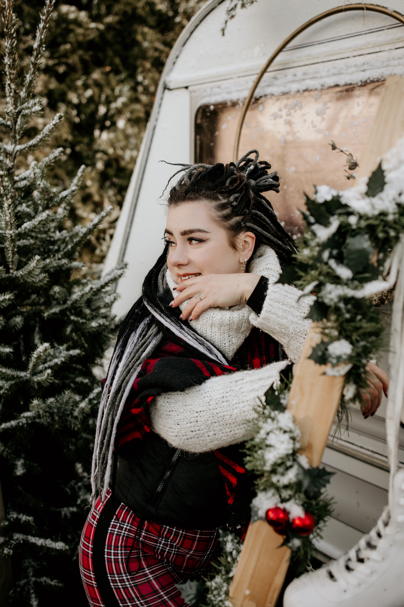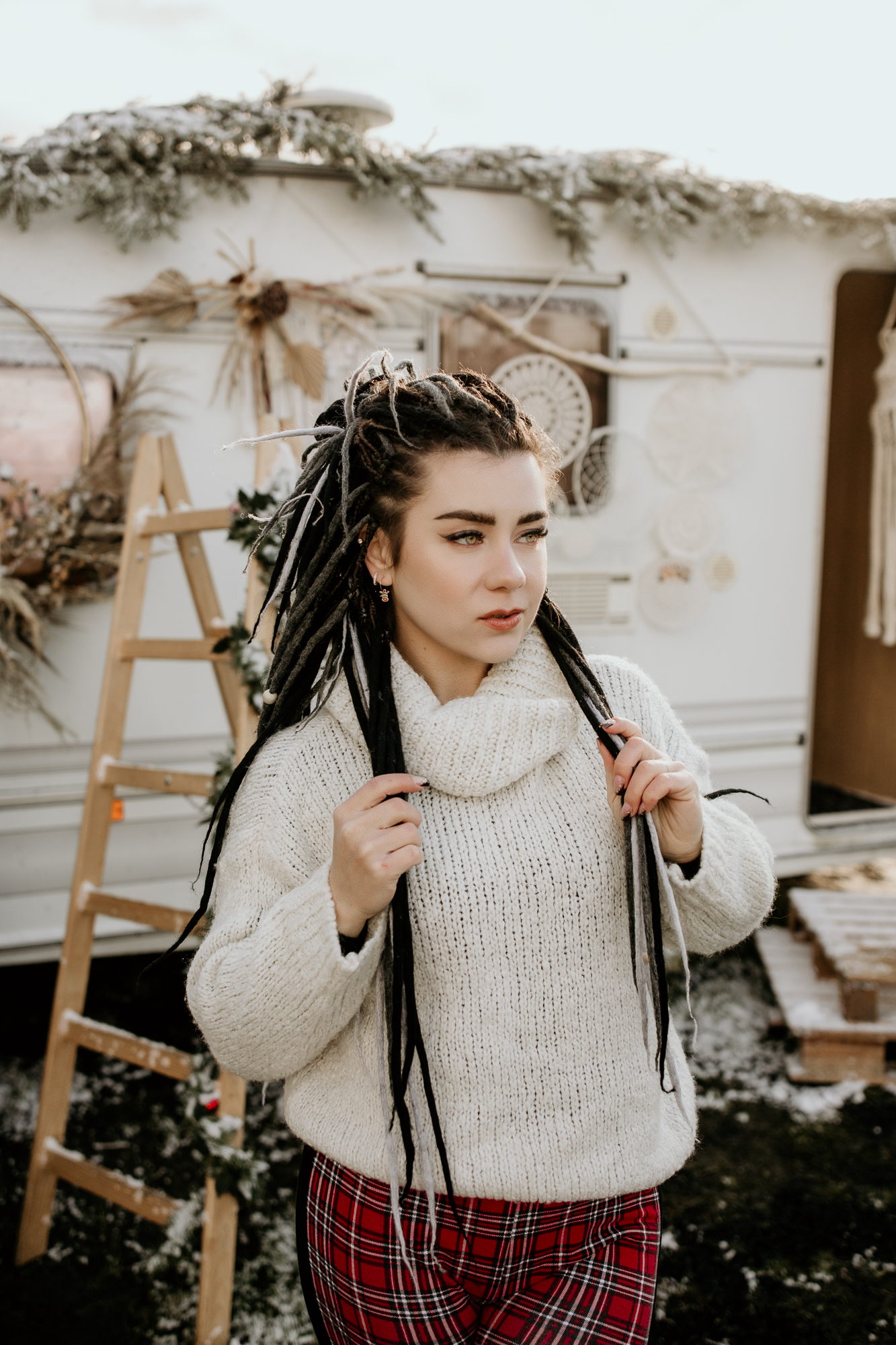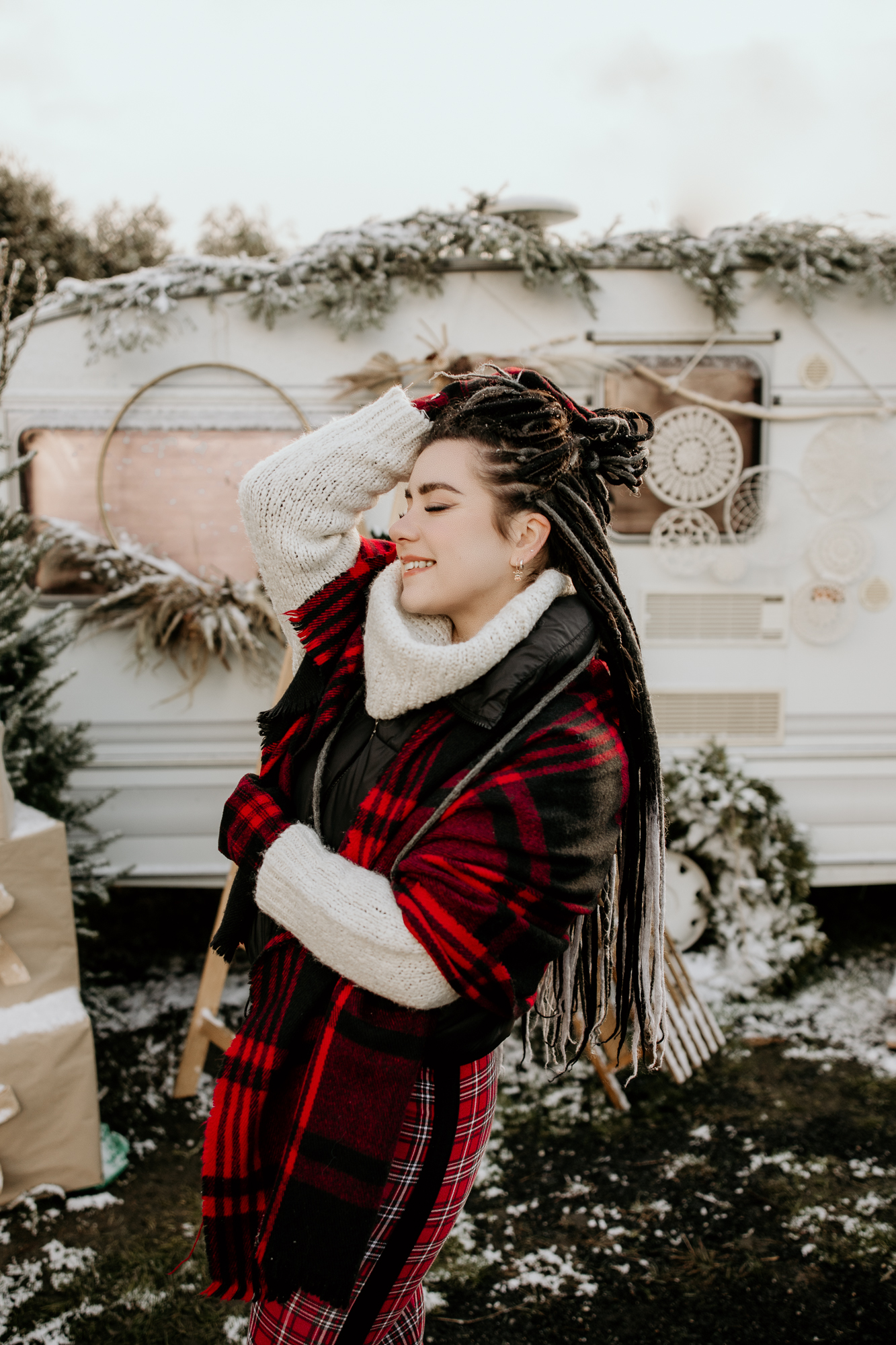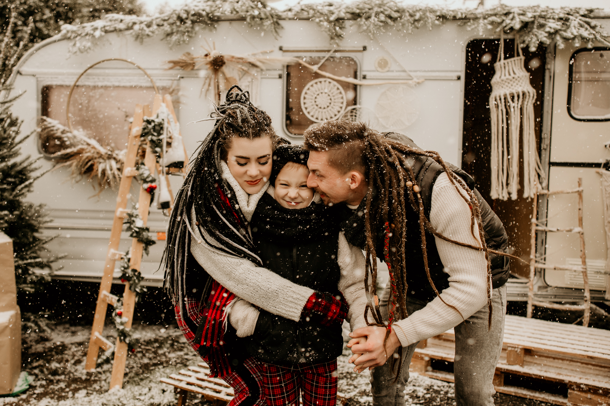Moje mini sesje świąteczne są niepowtarzalne i wciąż czarują, często słyszę od Was, że zwykłe fotografie przeistaczam w świąteczne opowieści. W tym roku stworzyłam trzy różnorodne sceny, aby jeszcze bardziej Was zadowolić. Pierwsza scena, umieszczona w studio, ożywiła tradycję bożonarodzeniową za pomocą klasycznej choinki i łóżka, było dużo zieleni i czerwieni, a tło emanowało ciepłem i radością. Druga scena, również w studio, przywitała minimalistyczny styl ze stylowym wiankiem, co zapewniło elegancję i subtelność. Jednak to trzecia scenka, umiejscowiona na świeżym powietrzu z użyciem przyczepy kempingowej w stylu boho, okazała się prawdziwym hitem. Dekoracje i oryginalność przyczepy przyciągnęły więcej zainteresowanych, co doprowadziło do zwiększenia liczby sesji, niż pierwotnie planowałam. To właśnie połączenie różnorodnych scen, starannie dobranych detali i kreatywnej ekspresji pozwala mi na to, by radować pięknymi zdjęciami.