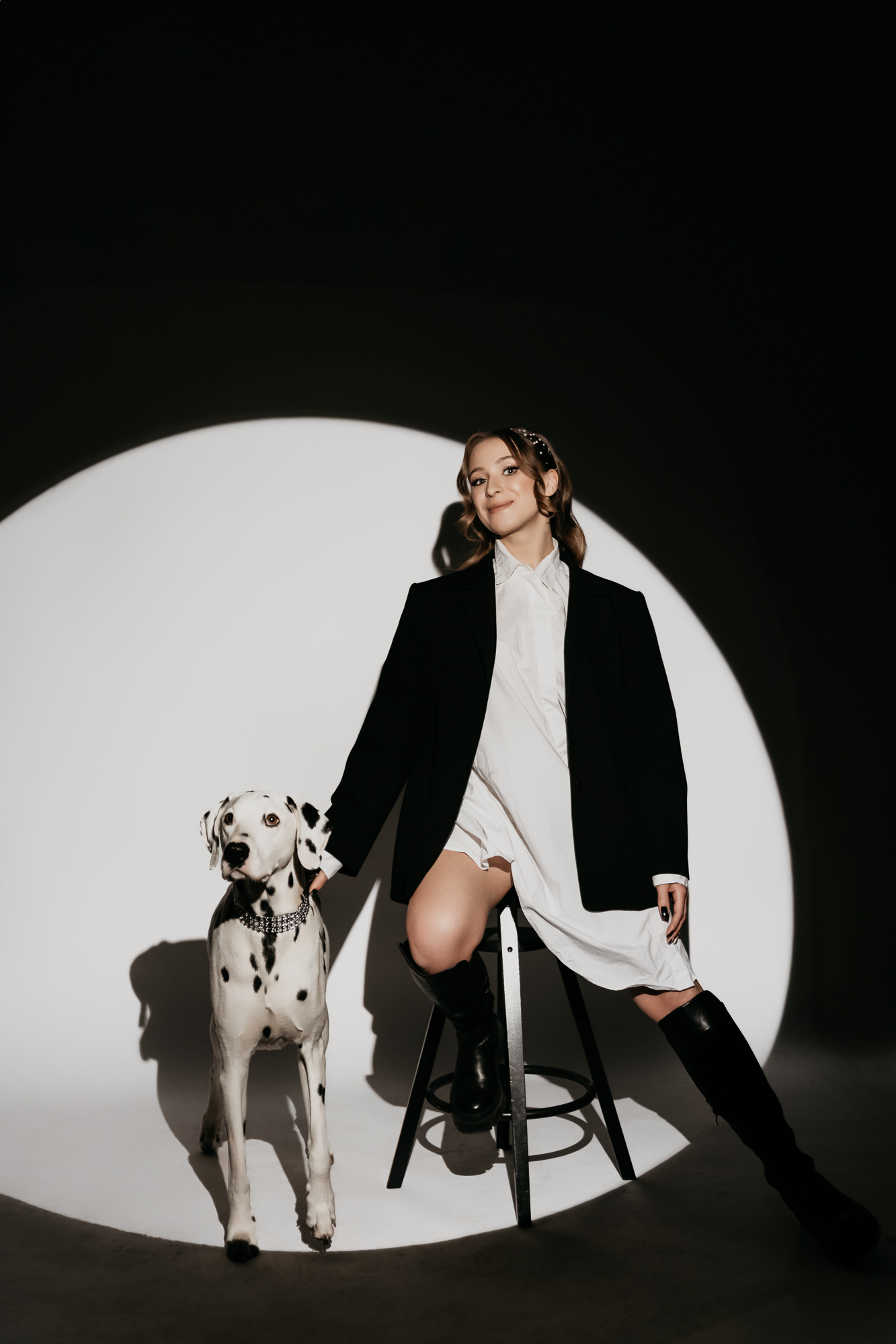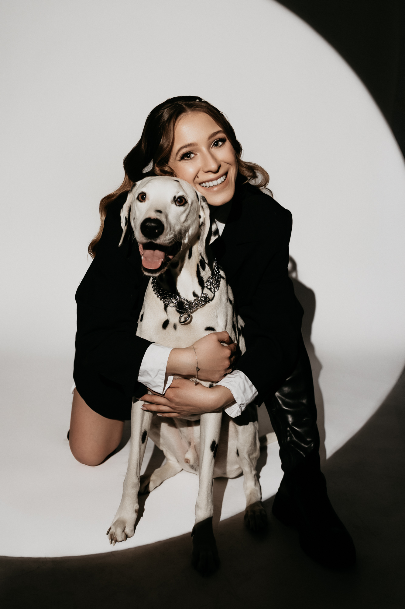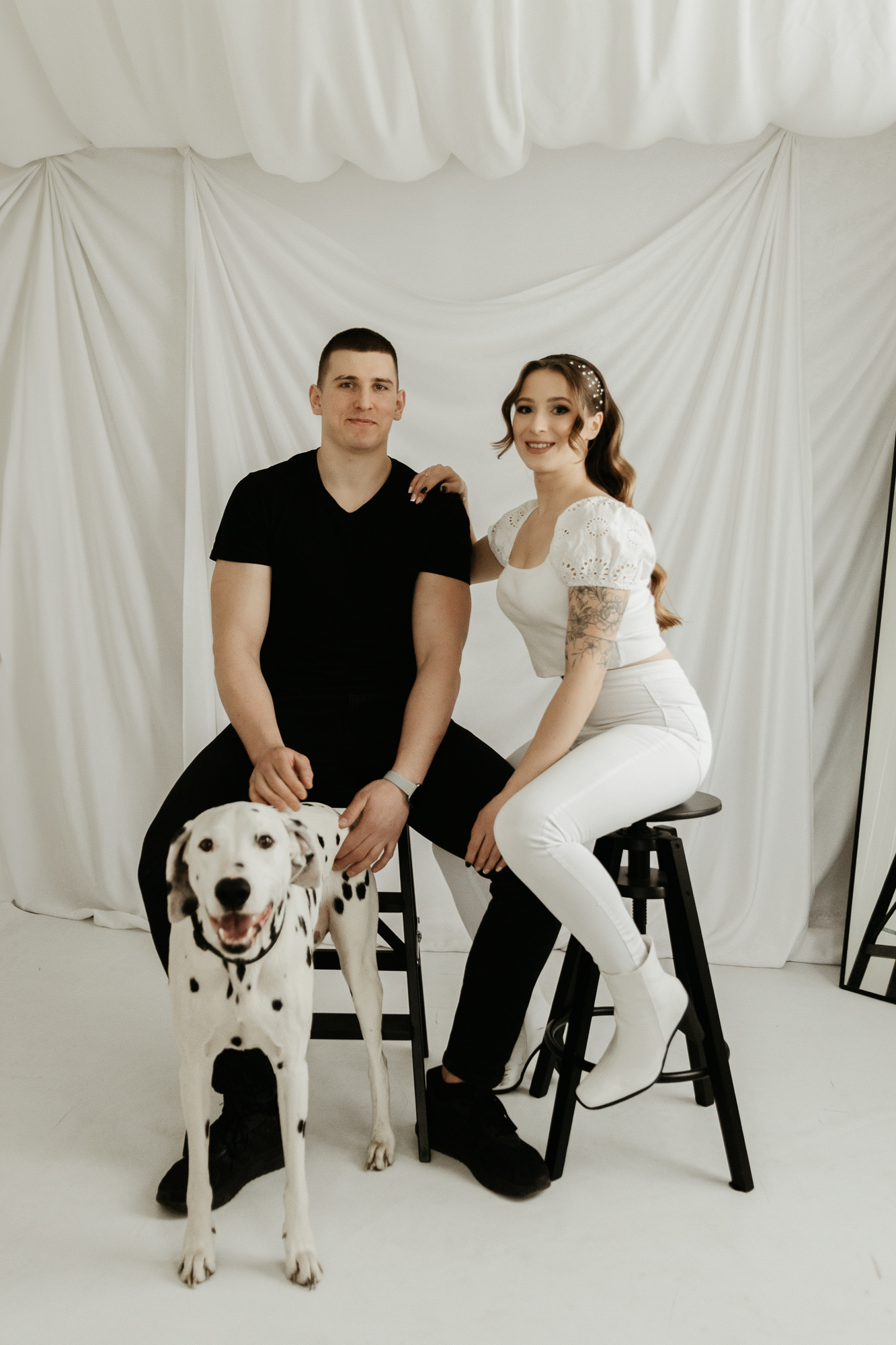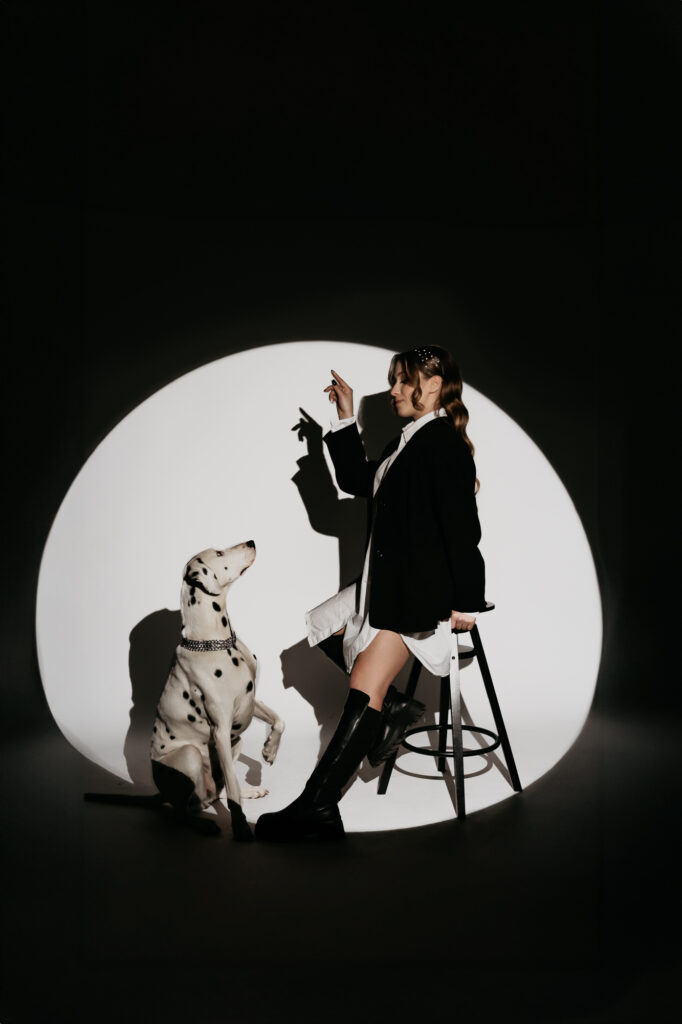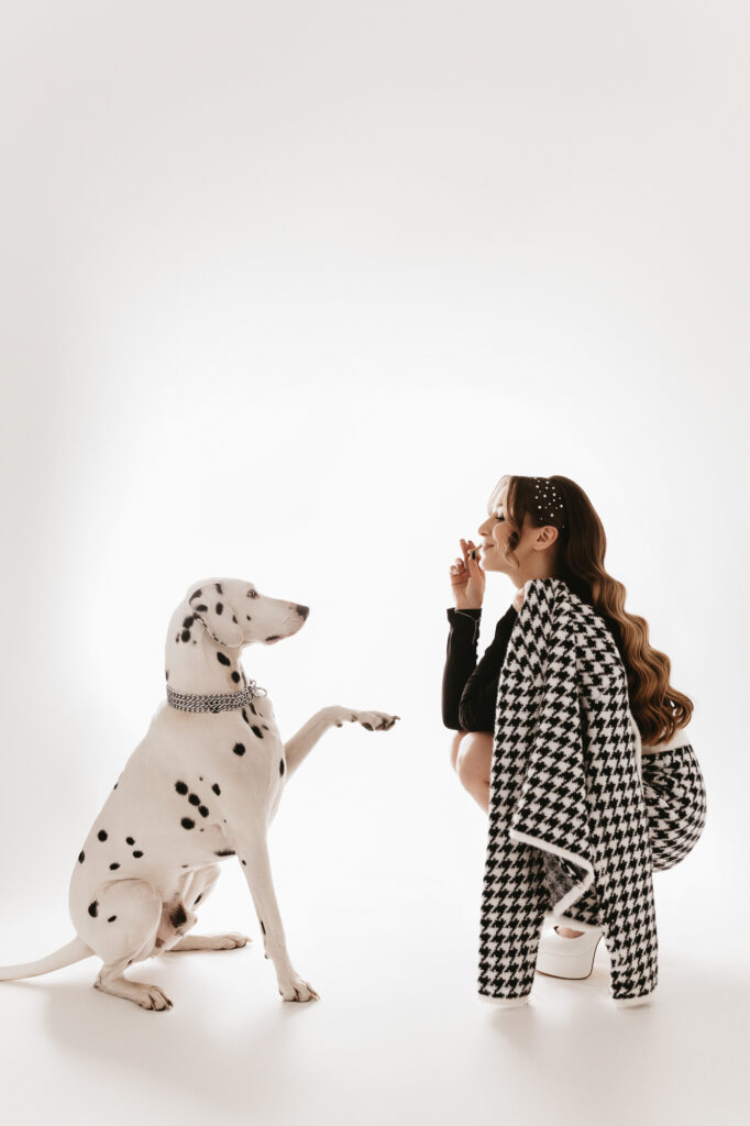 Spotkaliśmy się w kameralnym studiu, gdzie każdy z uczestników – zarówno dwu- jak i czworonożnych – mógł poczuć się komfortowo. Dalmatyńczyk od razu skradł moje serce. Był energiczny, ciekawski, ale też bardzo uważny na swoich ludzi. Widać było, że między tą trójką istnieje silna więź, a ja miałam przywilej ją sfotografować.