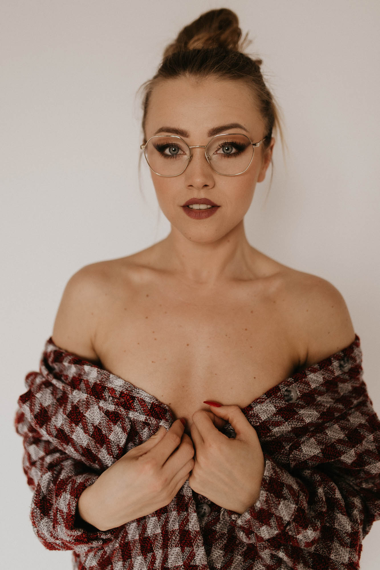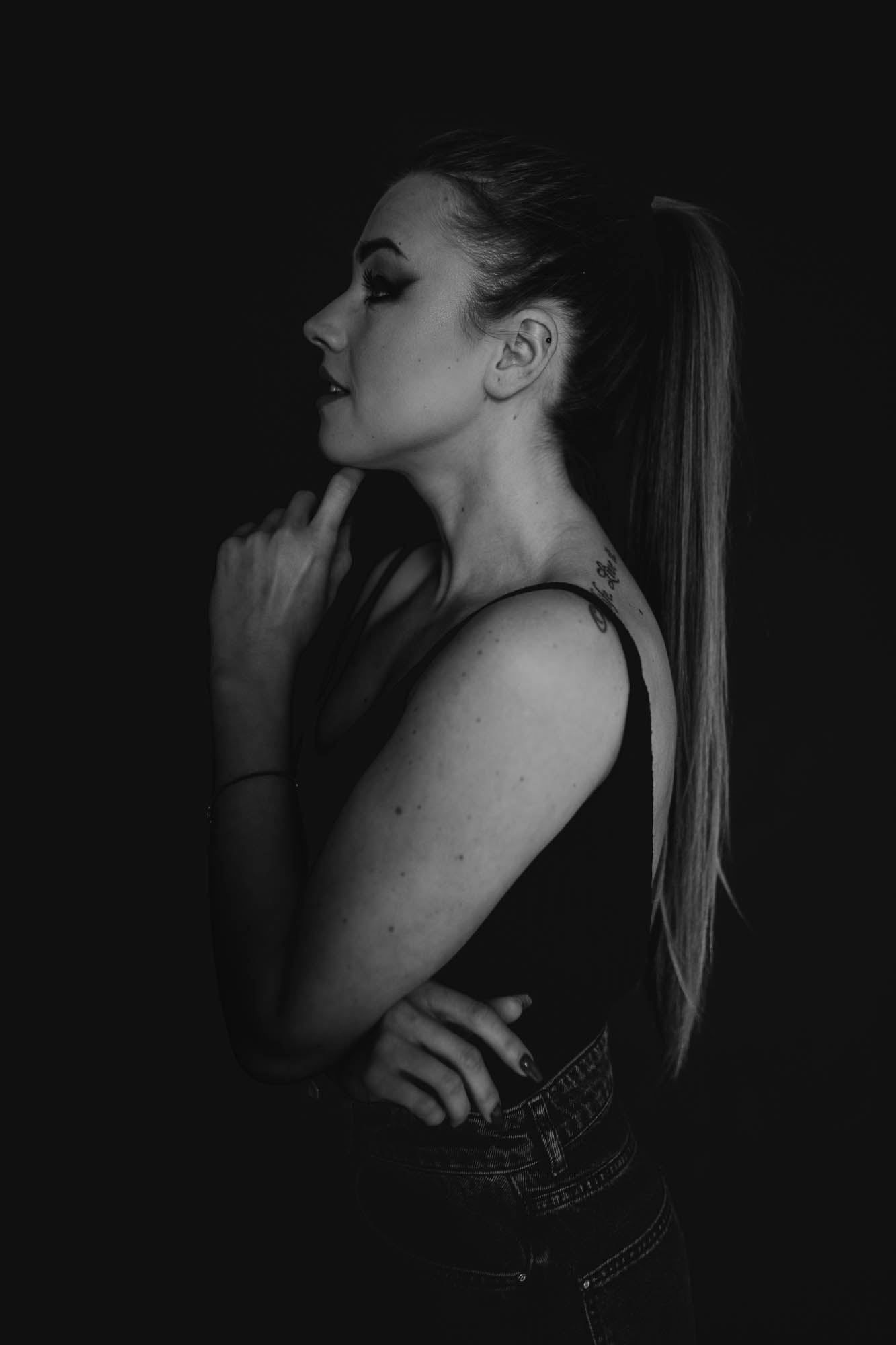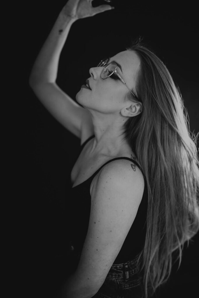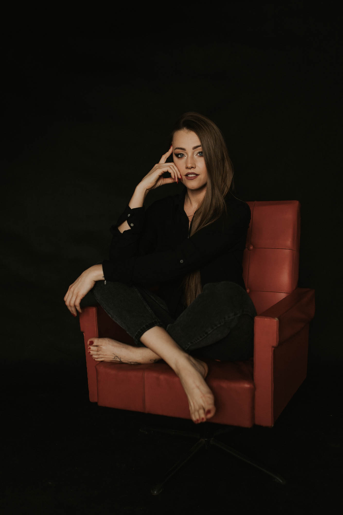 Czarne tło może być doskonałym wyborem dla portretów kobiecych, ponieważ pozwala skoncentrować uwagę na modelce i jej cechach. Czarne tło tworzy silny kontrast z oświetloną postacią, co dodaje dramatyzmu i głębi do portretu. To może pomóc w wydobyciu piękna, konturów twarzy, oczu i wyrazu modelki. Pozwala także, na wyraźne podkreślenie detali i cech modelki. Kolor skóry, usta, oczy czy włosy stają się bardziej wyróżniające się i wyraziste na takim tle. Następnie pomaga w skupieniu uwagi na twarzy i emocjach modelki. Bez rozpraszających elementów w tle, można skupić się na wyrazie twarzy, mimice i subtelnych gestach, co może przekazać bogactwo emocji i charakteru modelki. Czarne tło jest uniwersalne i pasuje do różnych stylów i tematów sesji portretowych kobiet. Może być stosowane zarówno w klasycznych, eleganckich portretach( tak jak tutaj), jak i w bardziej eksperymentalnych, czy artystycznych sesjach, które możesz znaleźć na moim Instagramie. To wszechstronne tło, które można dostosować do różnych wizji i zamysłów.