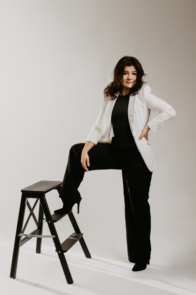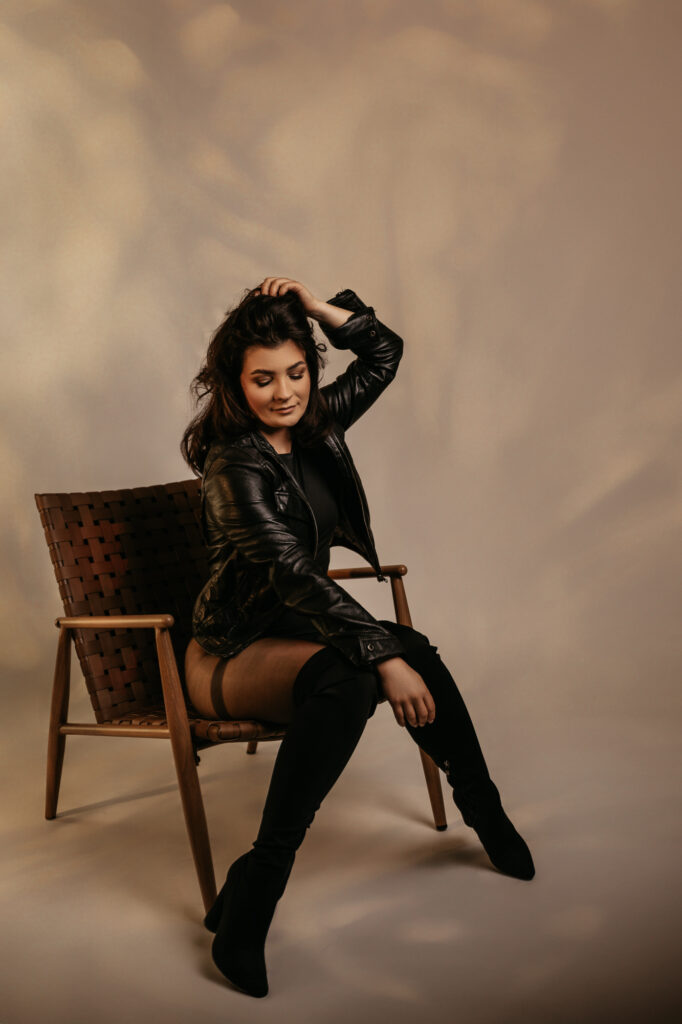 1️⃣ Pozowanie na krześle – minimalistycznie i z klasą