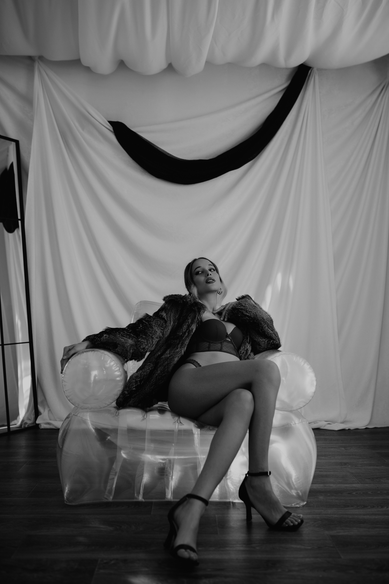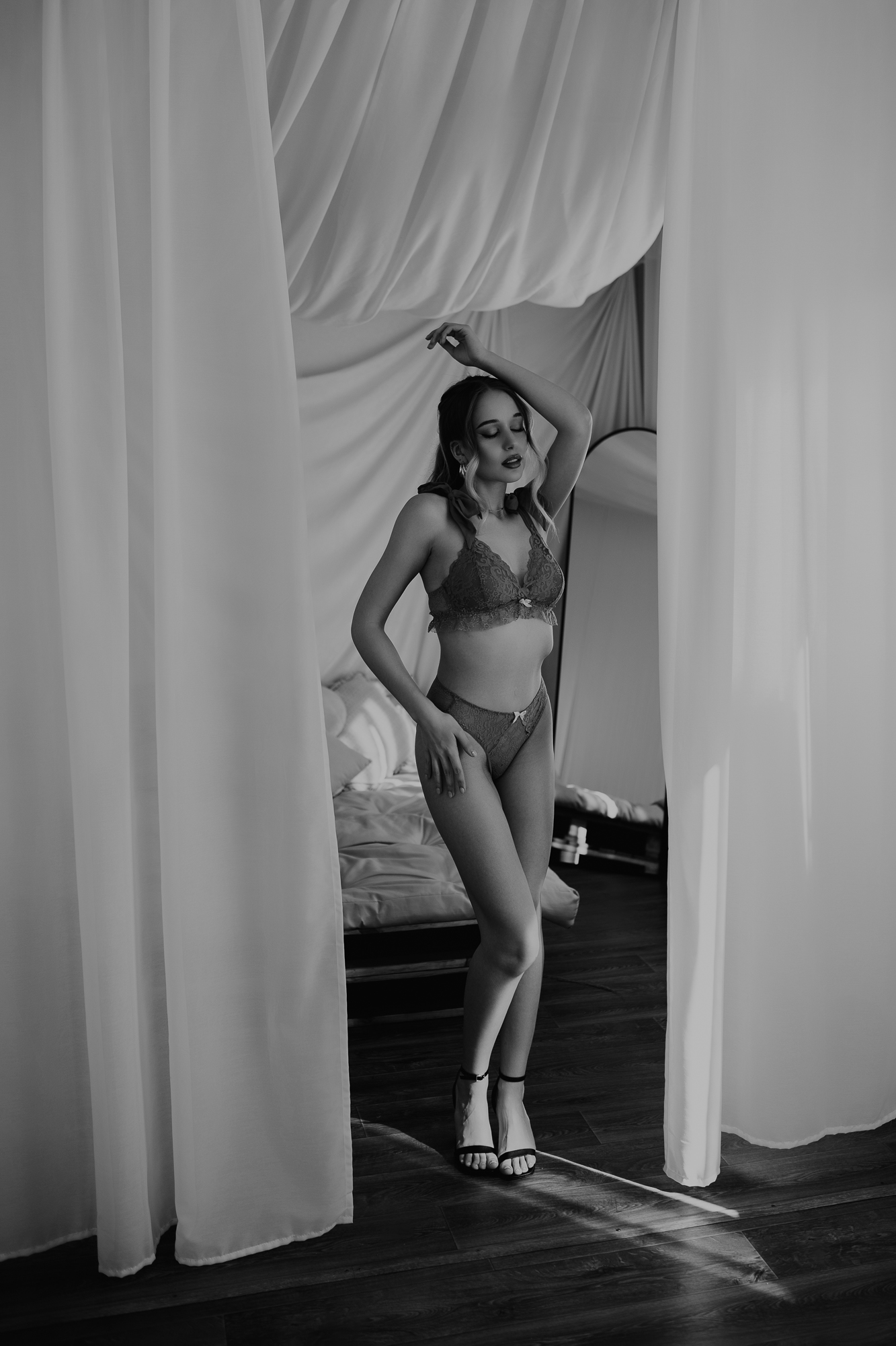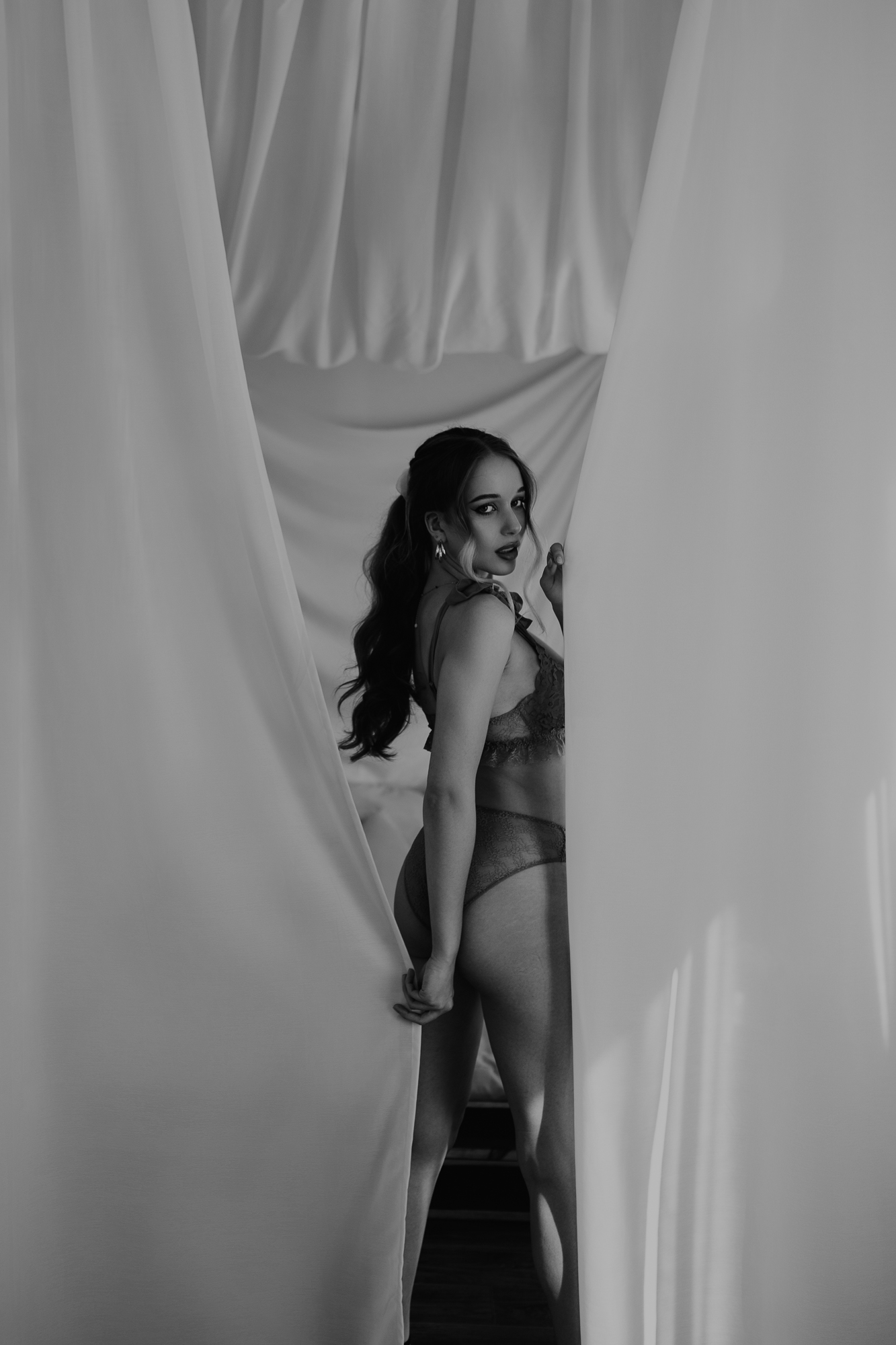 Druga i trzecia odsłona to klasyczne ujęcia w bieliźnie – ale nie o dosłowność tu chodziło. Klasa, szyk i delikatność były wyczuwalne w każdym kadrze. Subtelne pozy, piękne światło i stonowane tło sprawiły, że Emilii udało się uchwycić to, co w sensualności najważniejsze – nie dosłowność, ale atmosferę. Tę sesję można nazwać poetycką, a jednocześnie silną w przekazie.